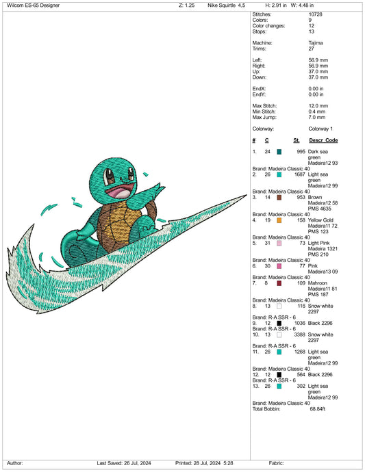 Archivos de bordado Squirtle Swoosh - 3 tamaños