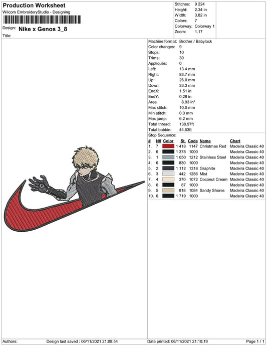 Genos One Punch Man Swoosh Embroidery Design Files - 3 Size'sPrecio habitual $6.99 USDPrecio habitualPrecio unitario / por-