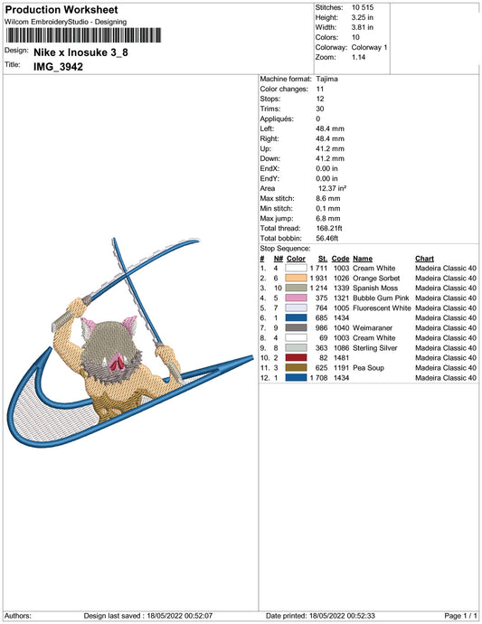 Inosuke Hashibira Swoosh v3 Embroidery Design Files - 3 Size'sPrecio habitual $6.99 USDPrecio habitualPrecio unitario / por-