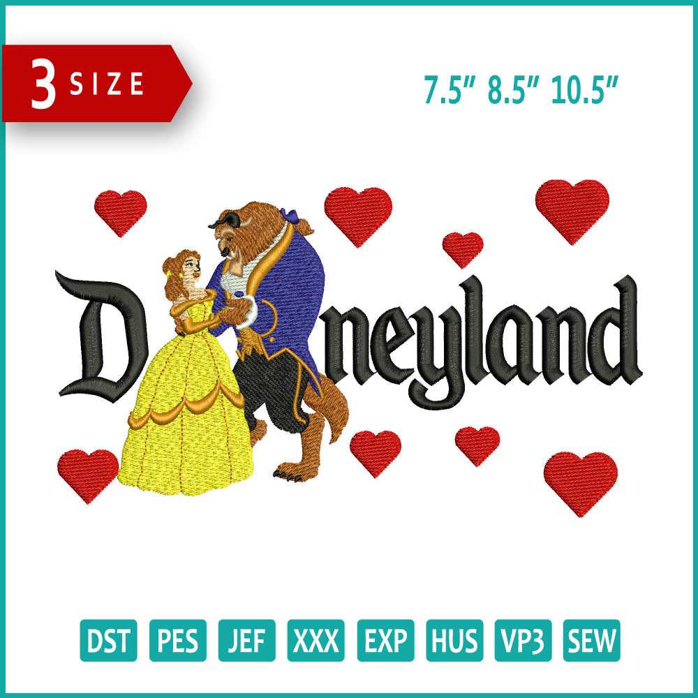 Archivos de diseño de bordado de La Bella y la Bestia de Disneyland (3 tamaños)