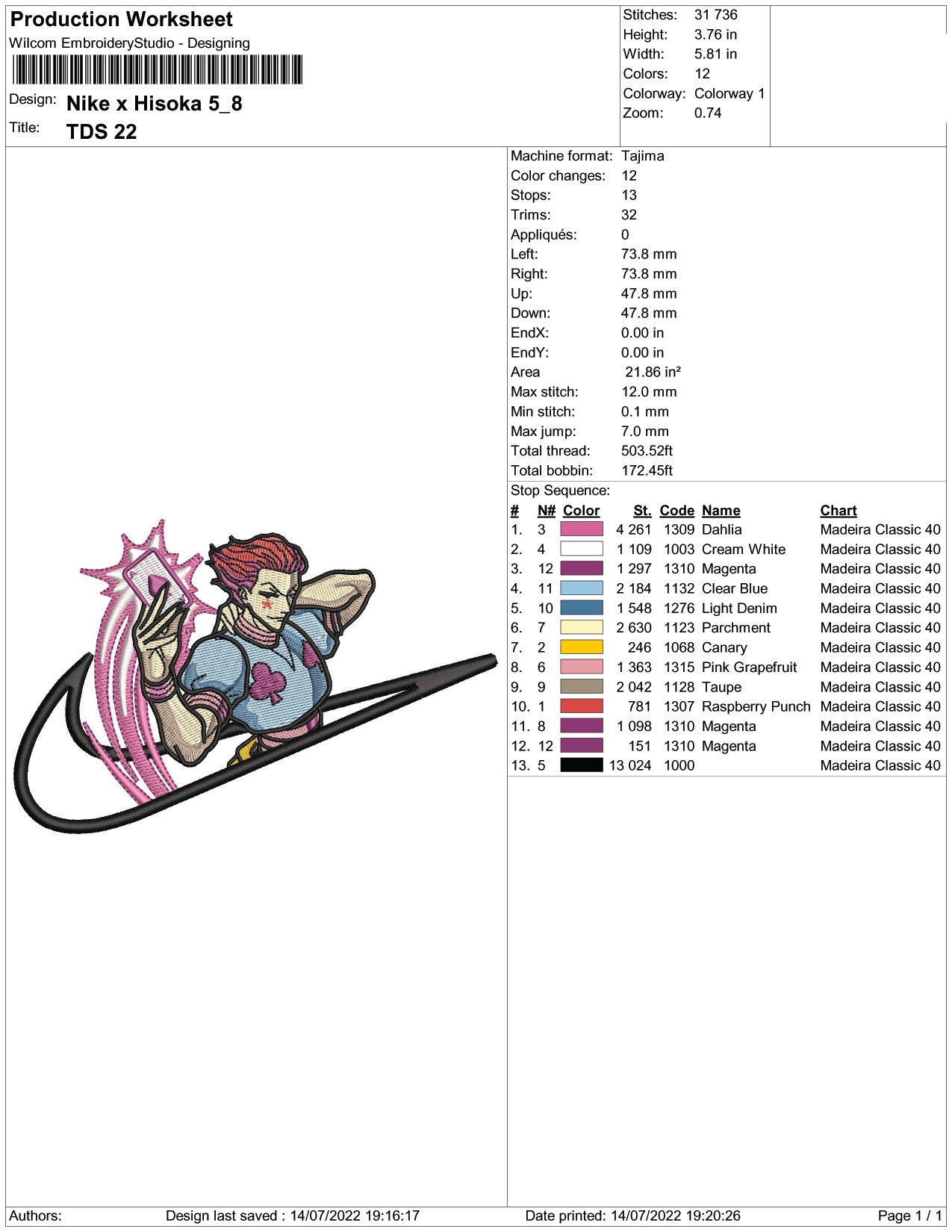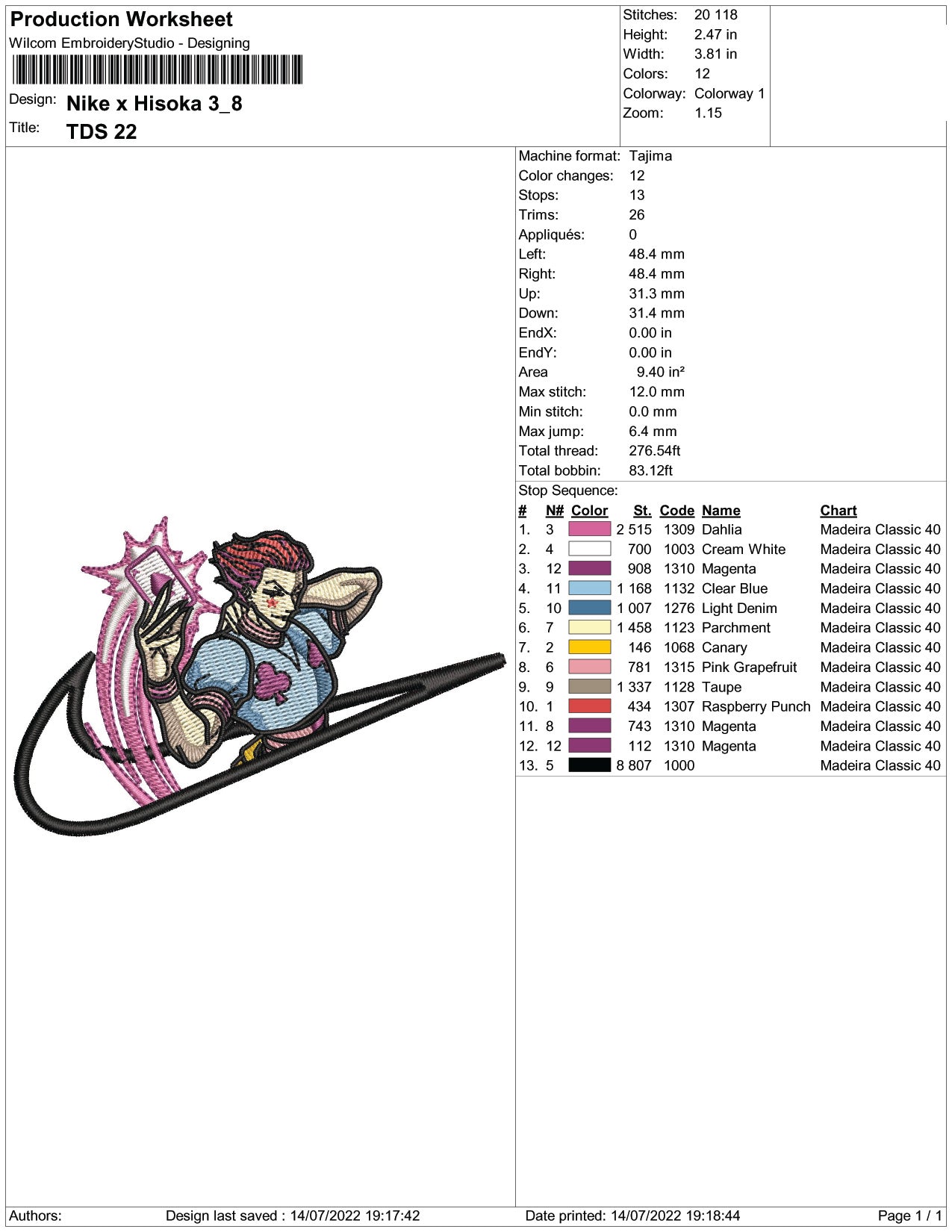 Hisoka Swoosh v2 Embroidery Design Files - 5 Size's