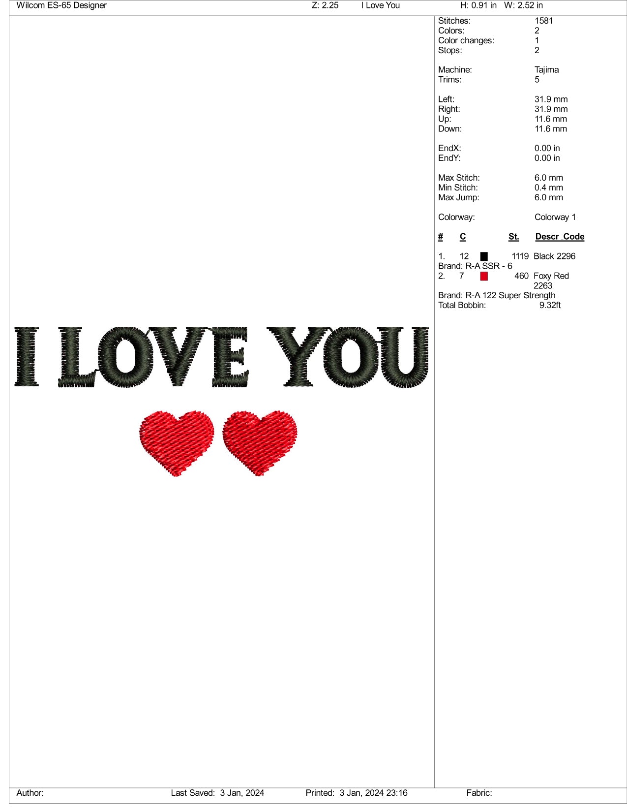 Archivos de diseño de bordado "Te amo" - 3 tamaños
