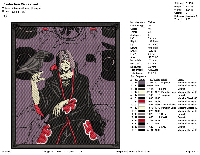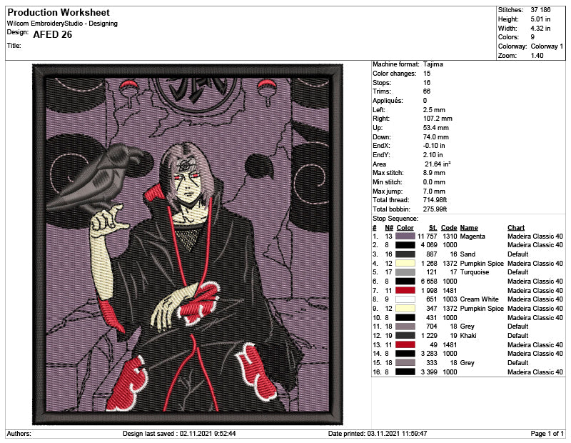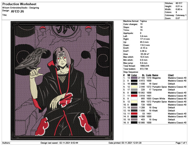 Itachi Uchiha v3 Embroidery Design Files - 4 Size's