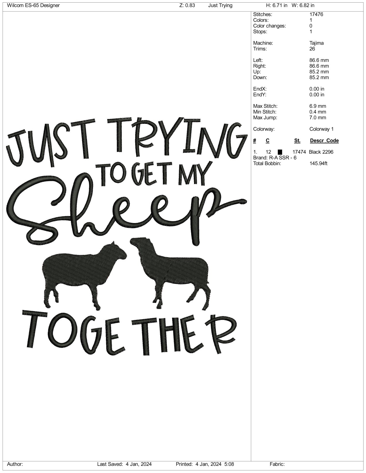 Archivos de diseño de bordado "Solo tratando de reunir a mis ovejas" - 3 tamaños