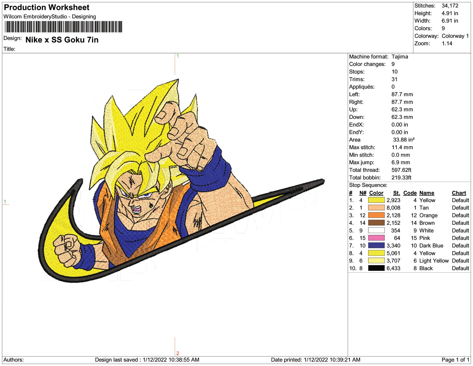 Nike Goku Swoosh v4 Embroidery Design Files - 3 Size's