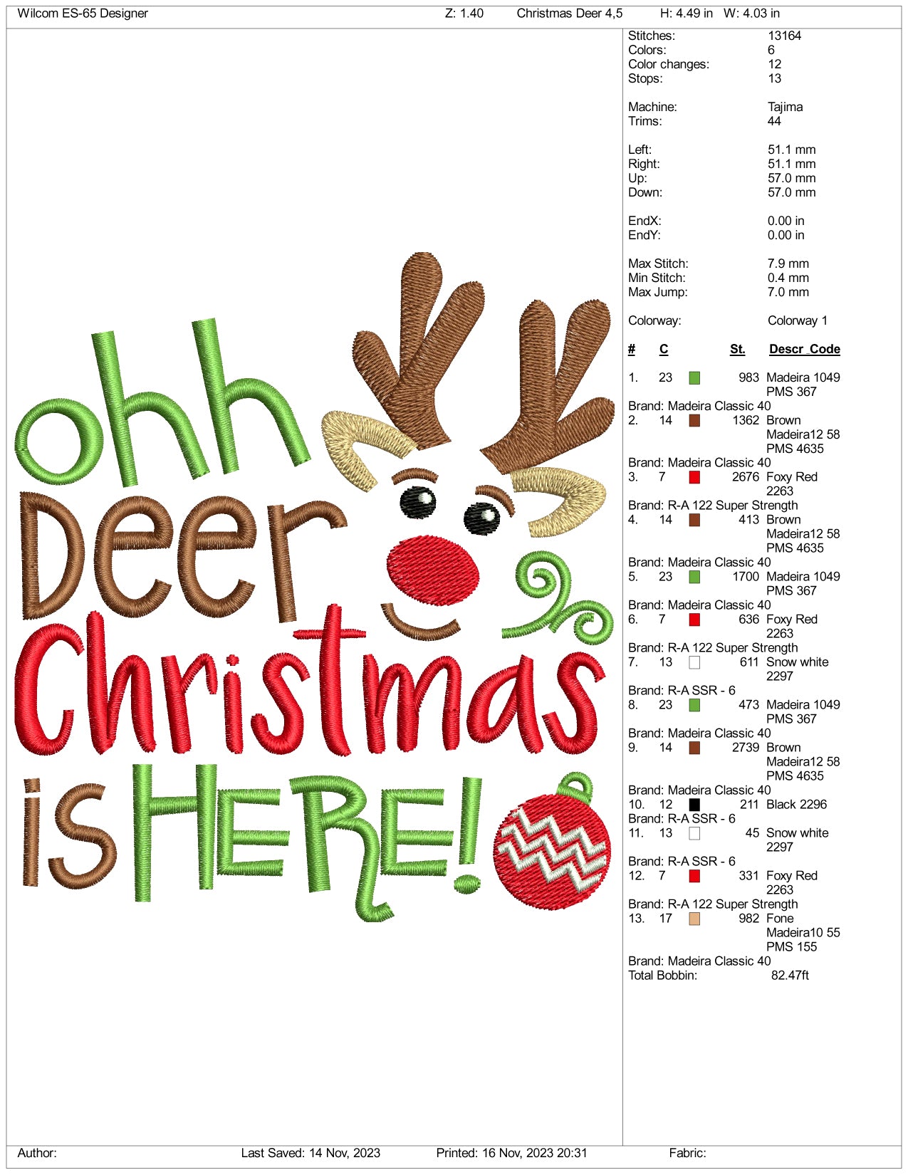 Archivos de diseño de bordado "Oh Deer Christmas Is Here" (3 tamaños)