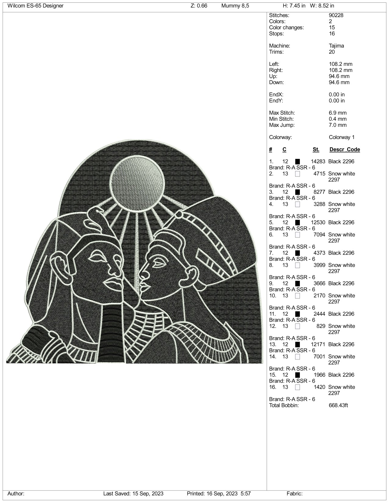 Archivos de diseño de bordado del faraón Tutankamón (3 tamaños)