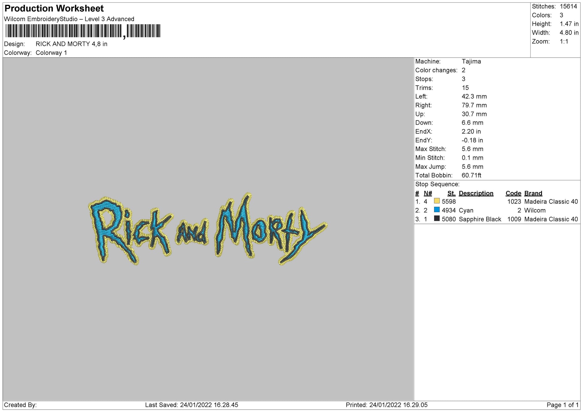 Rick and Morty Logo Embroidery Design Files - 4 Size's