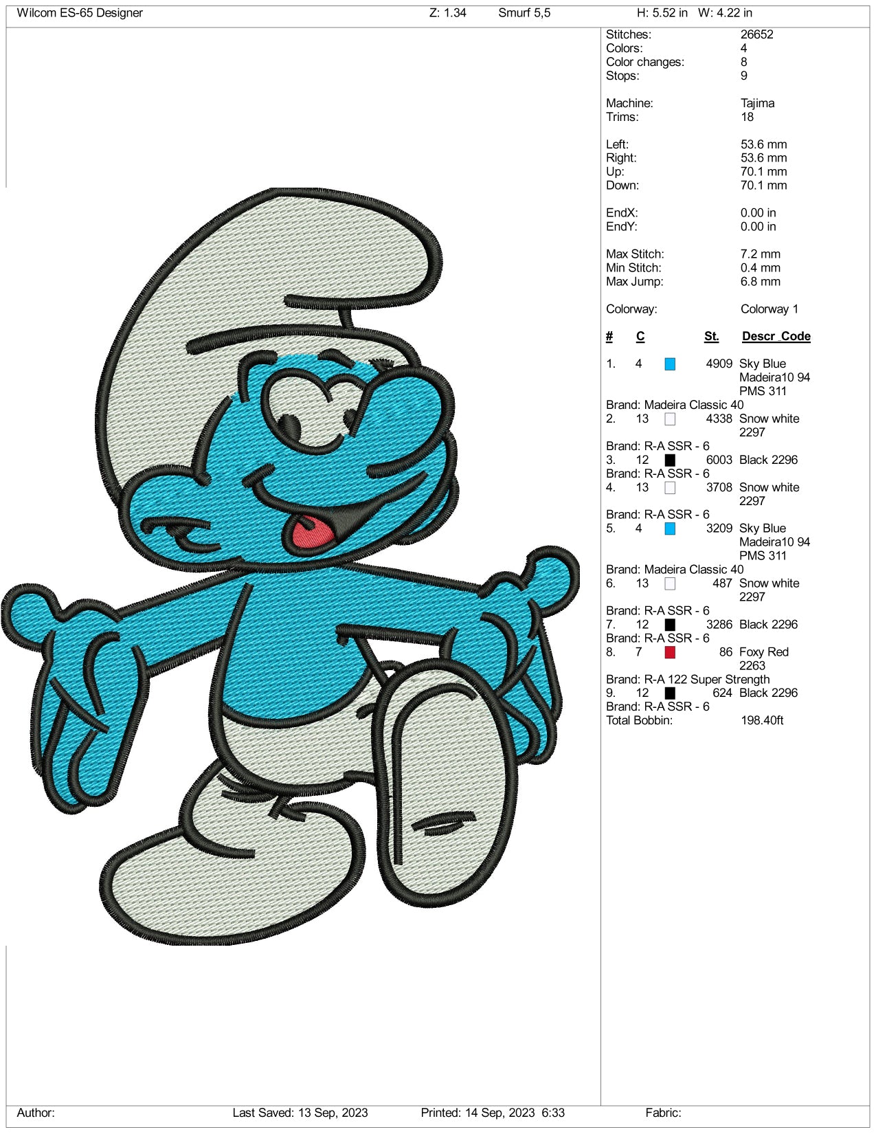 Archivos de diseño de bordado de los Pitufos - 3 tamaños