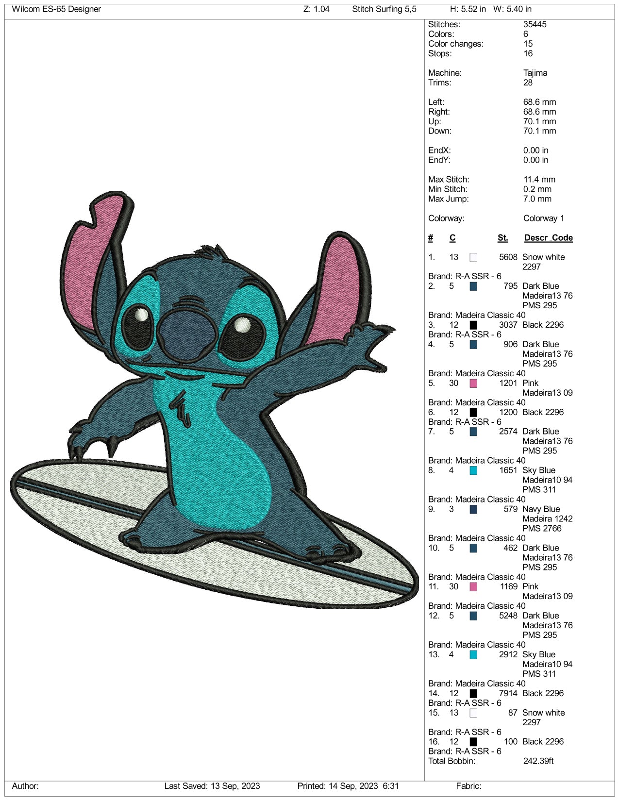 Archivos de diseño de bordado de puntada en una tabla de surf - 3 tamaños