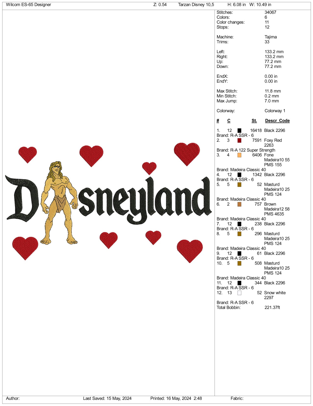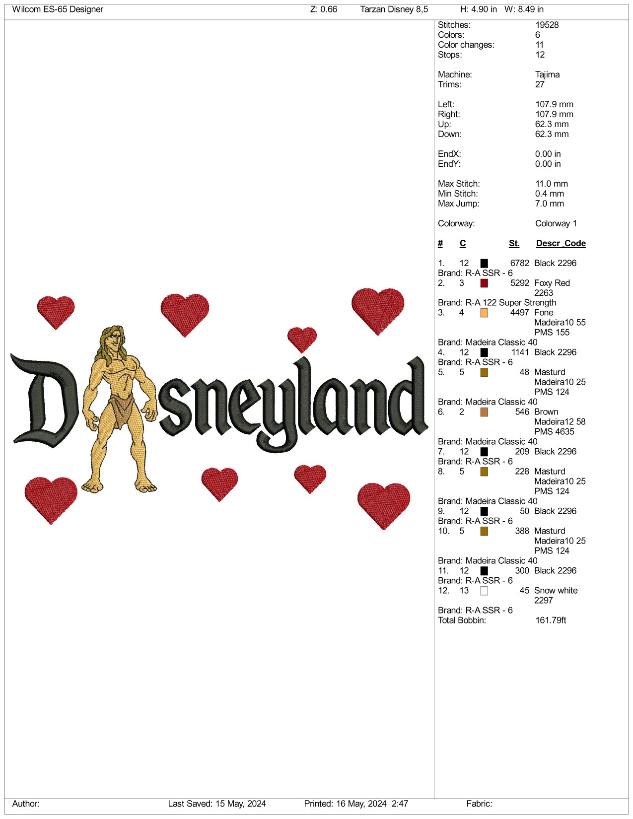 Archivos de diseño de bordado de Tarzán Disneyland - 3 tamaños
