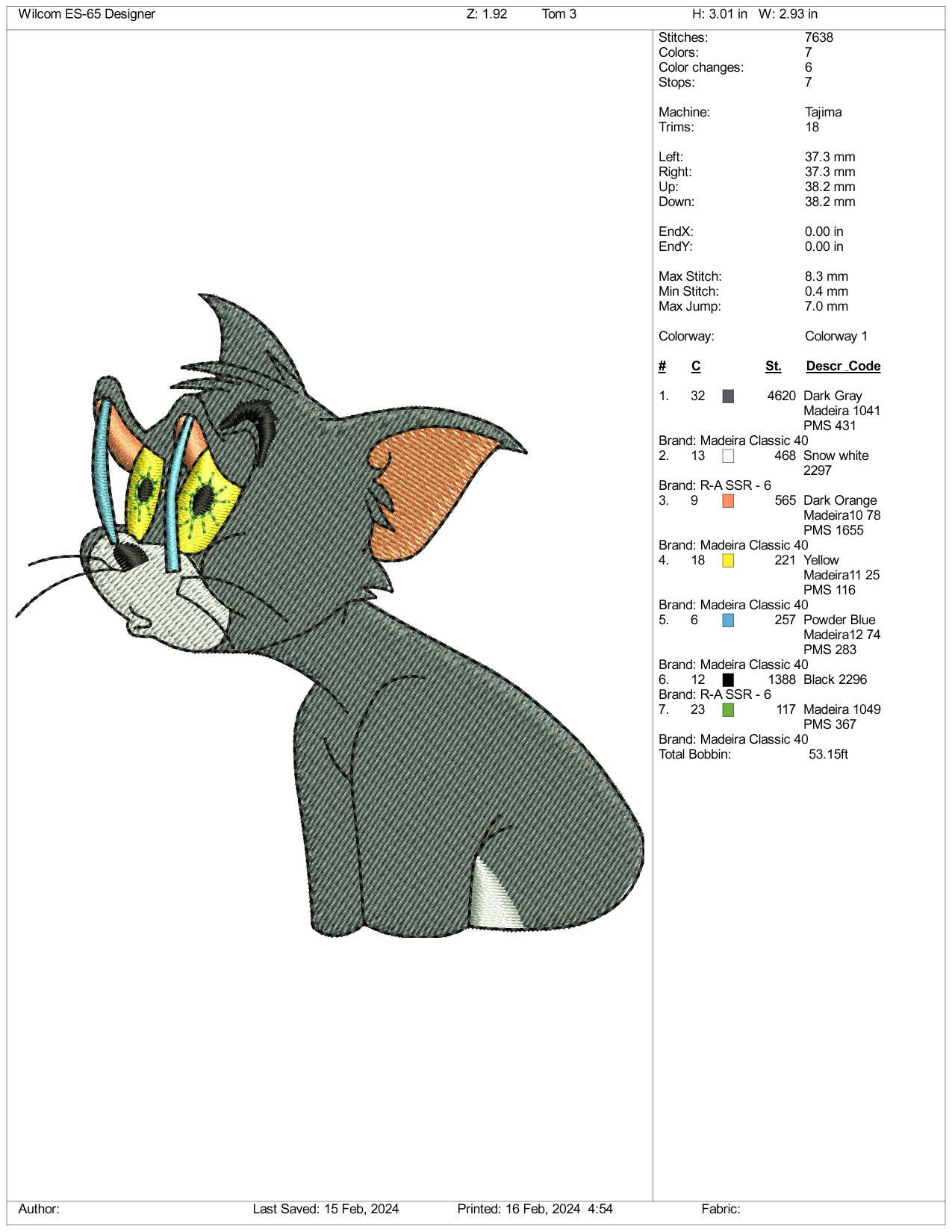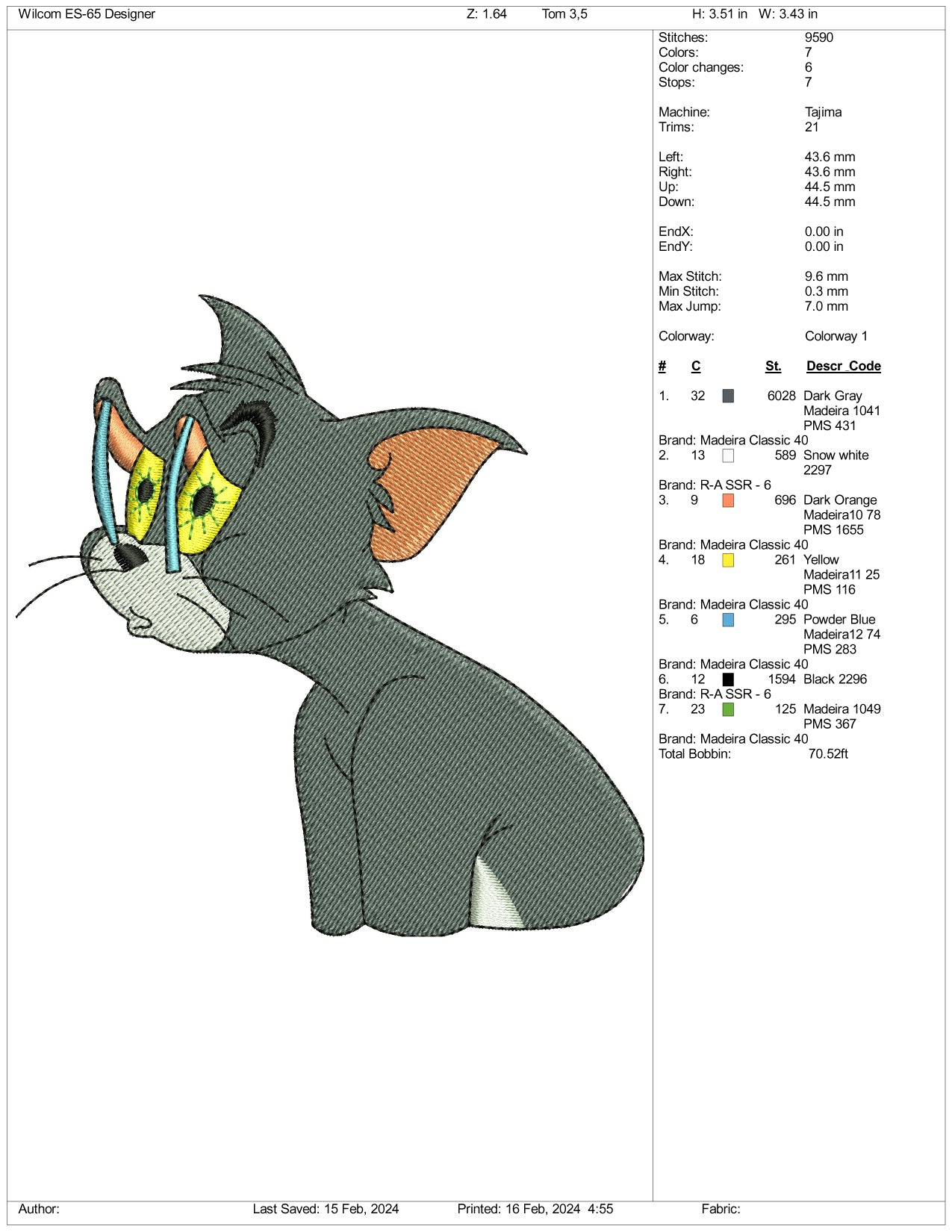 Archivos de diseño de bordado de Tom el cansado - 3 tamaños