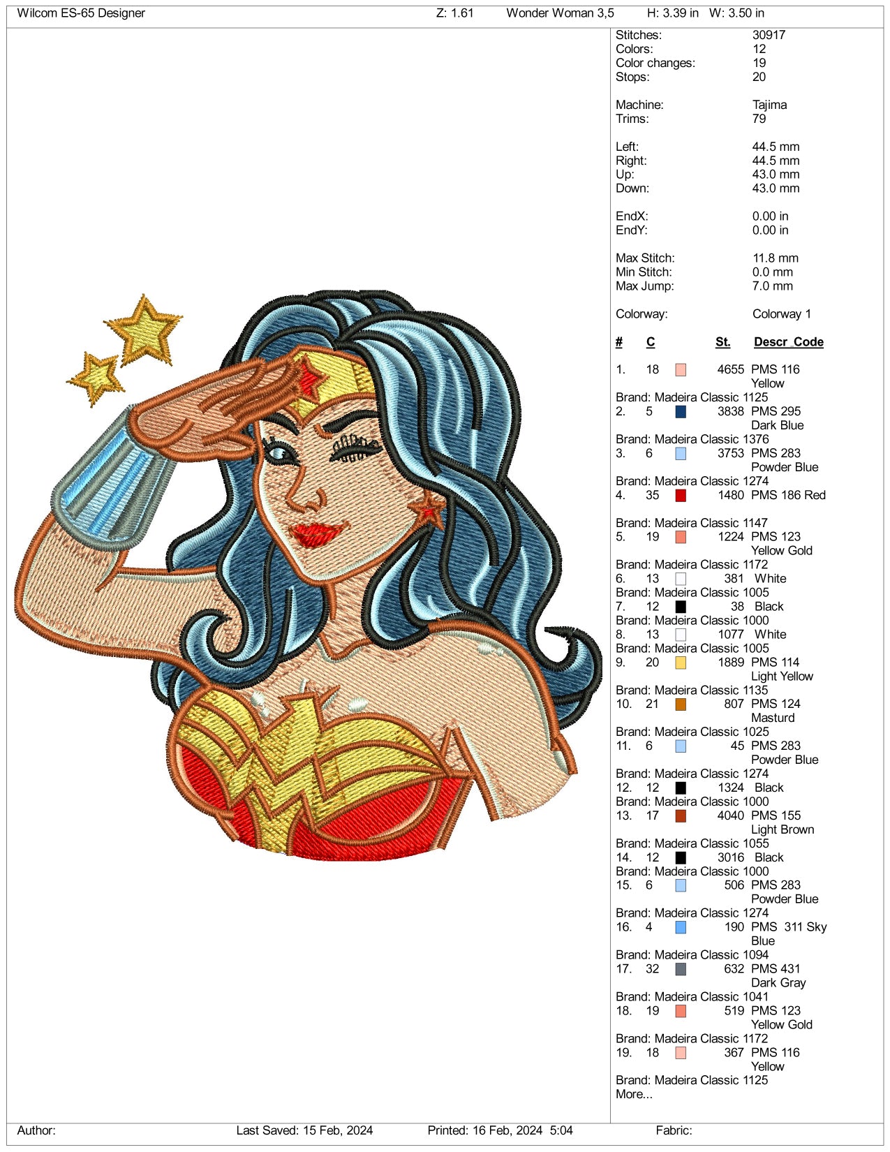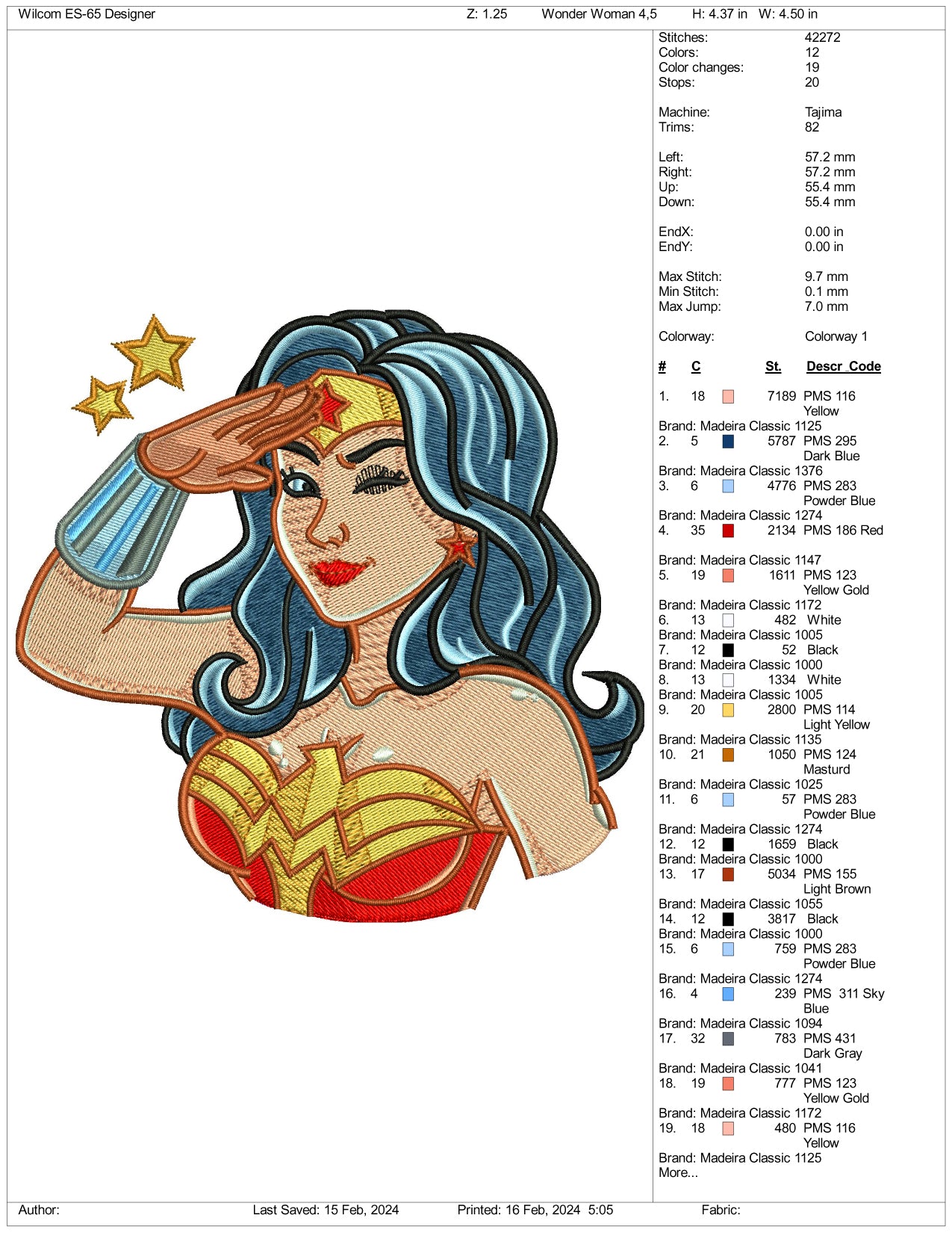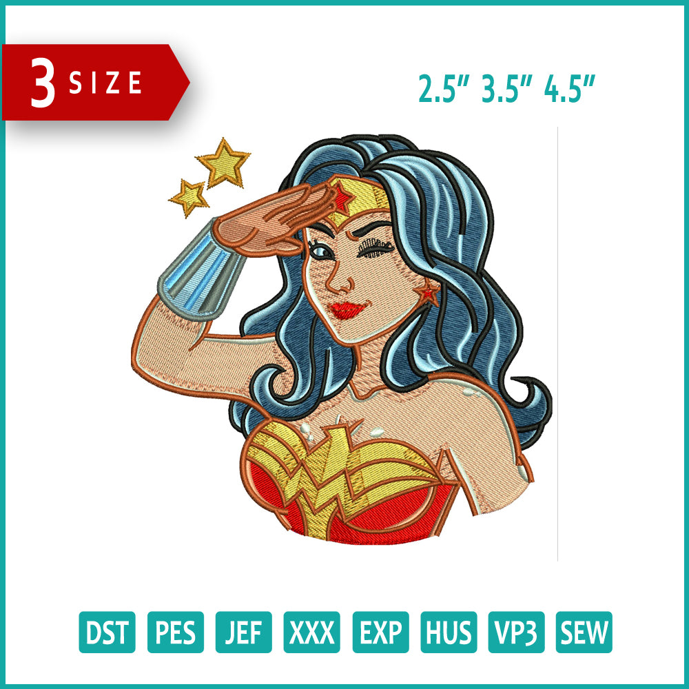 Archivos de diseño de bordado de la Mujer Maravilla - 3 tamaños