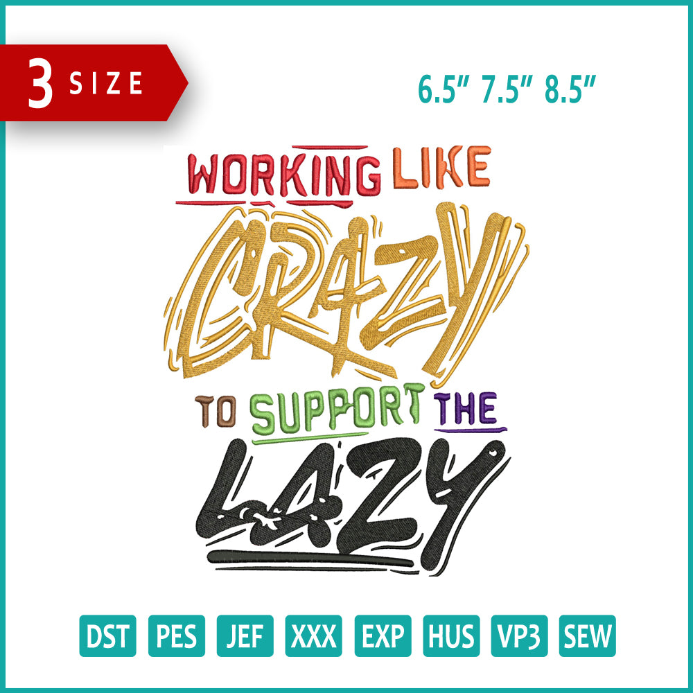 Archivos de diseño de bordado Working Like Crazy - 3 tamaños