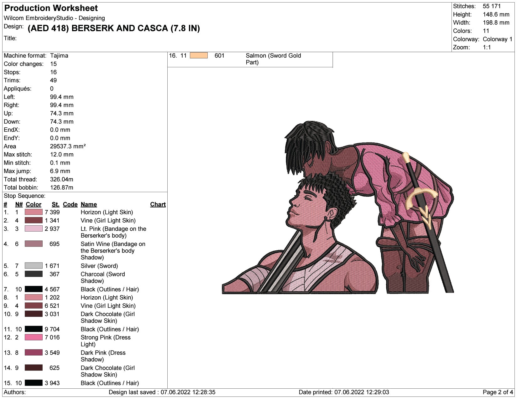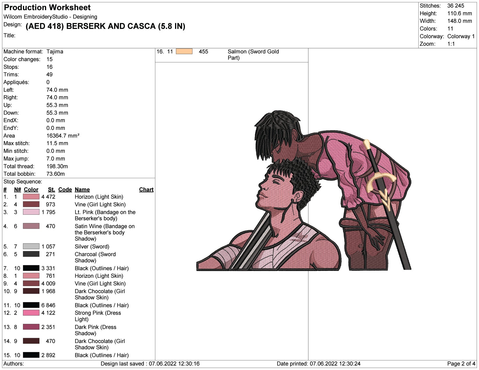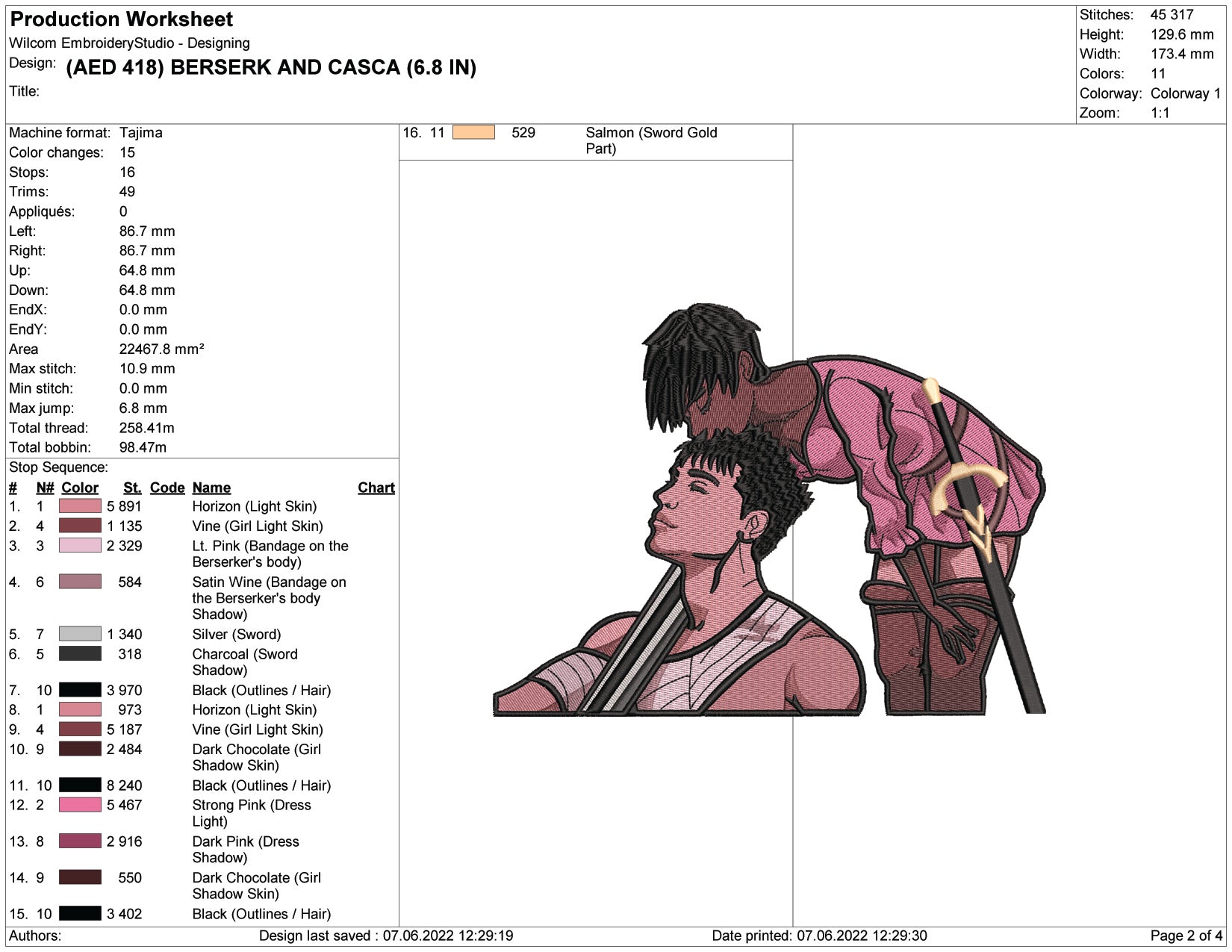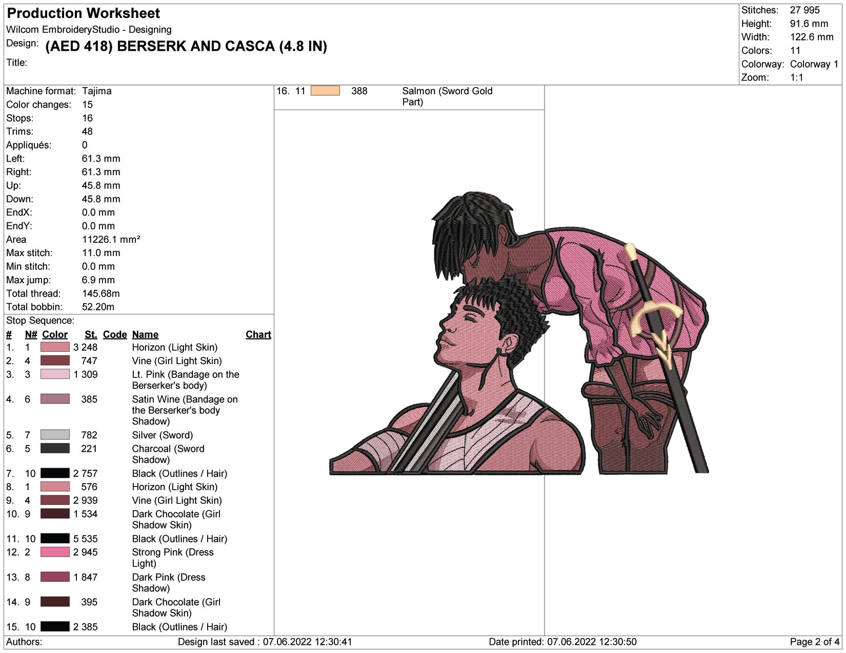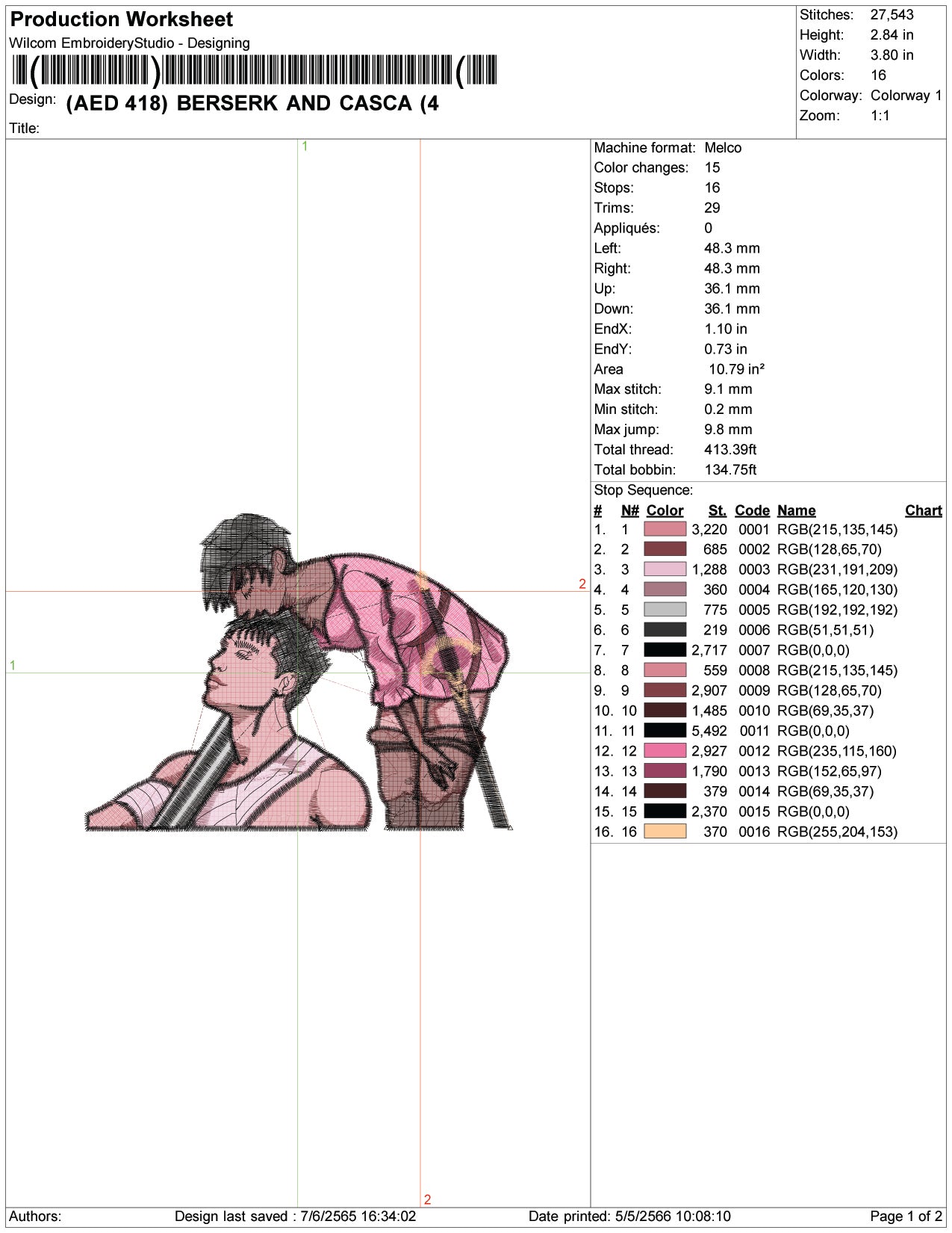 Berserk And Casca Embroidery Design Files - 5 Size's