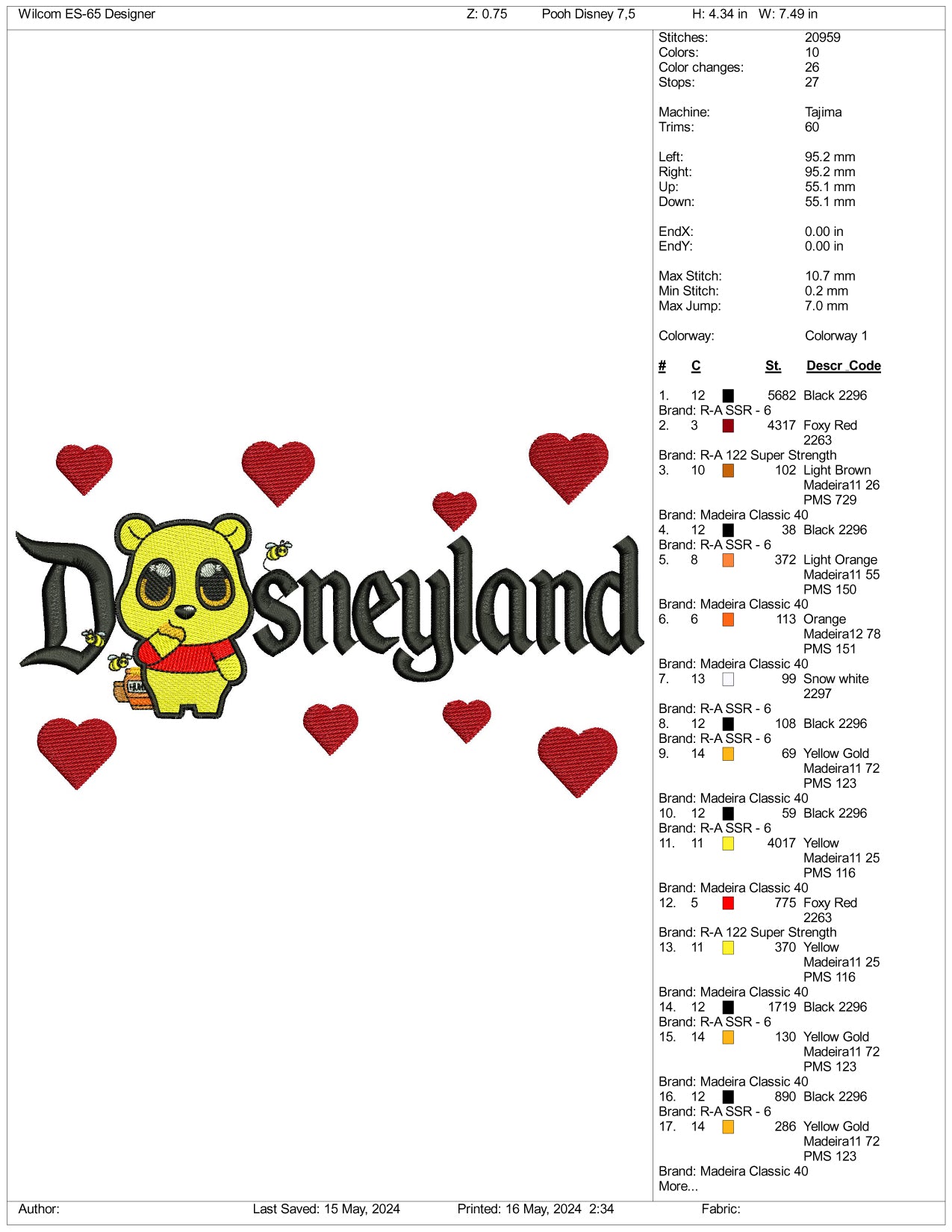 Chibi Pooh Disneyland Embroidery Design Files - 3 Sizes