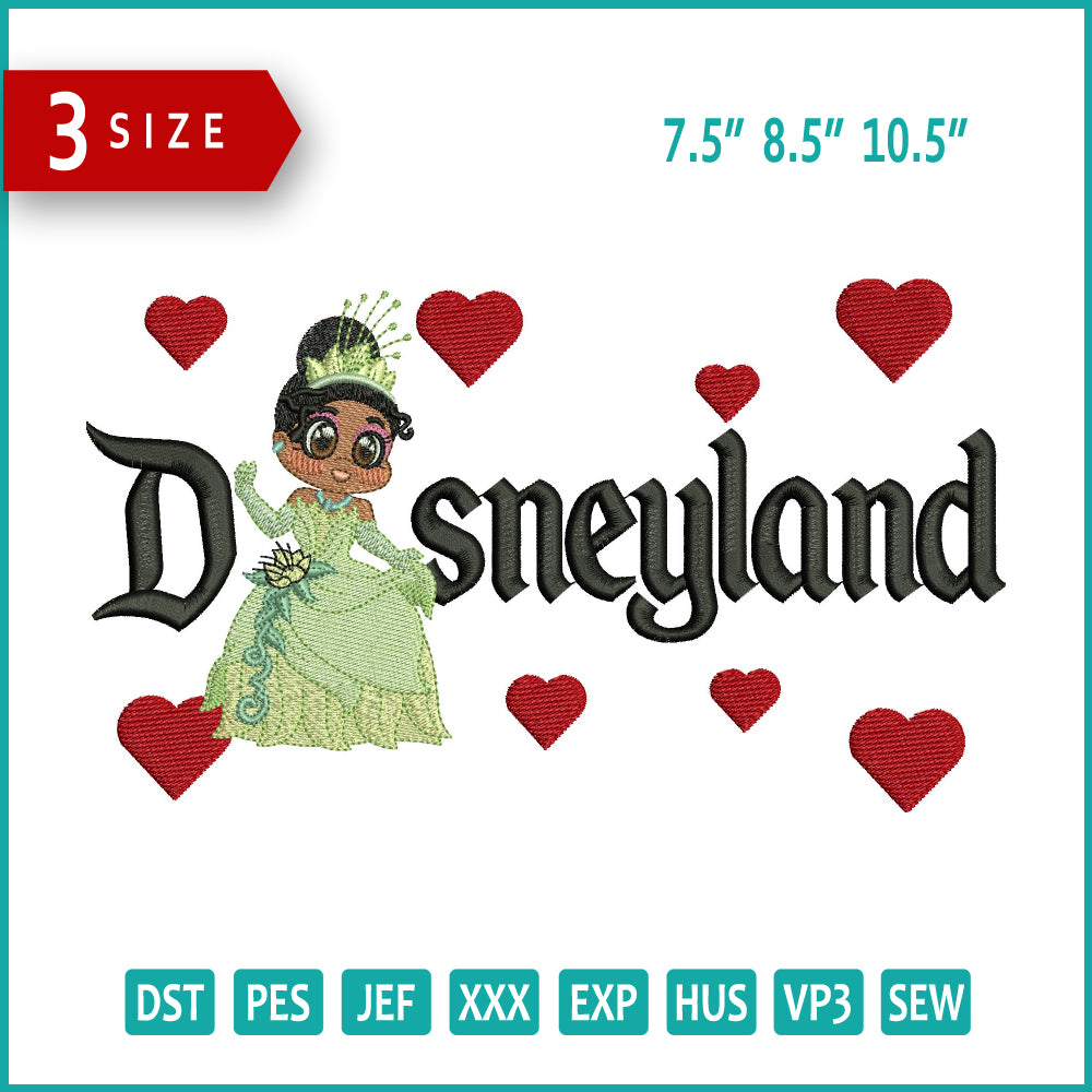 Chibi Princess Tiana Disneyland Embroidery Design Files - 3 Size's