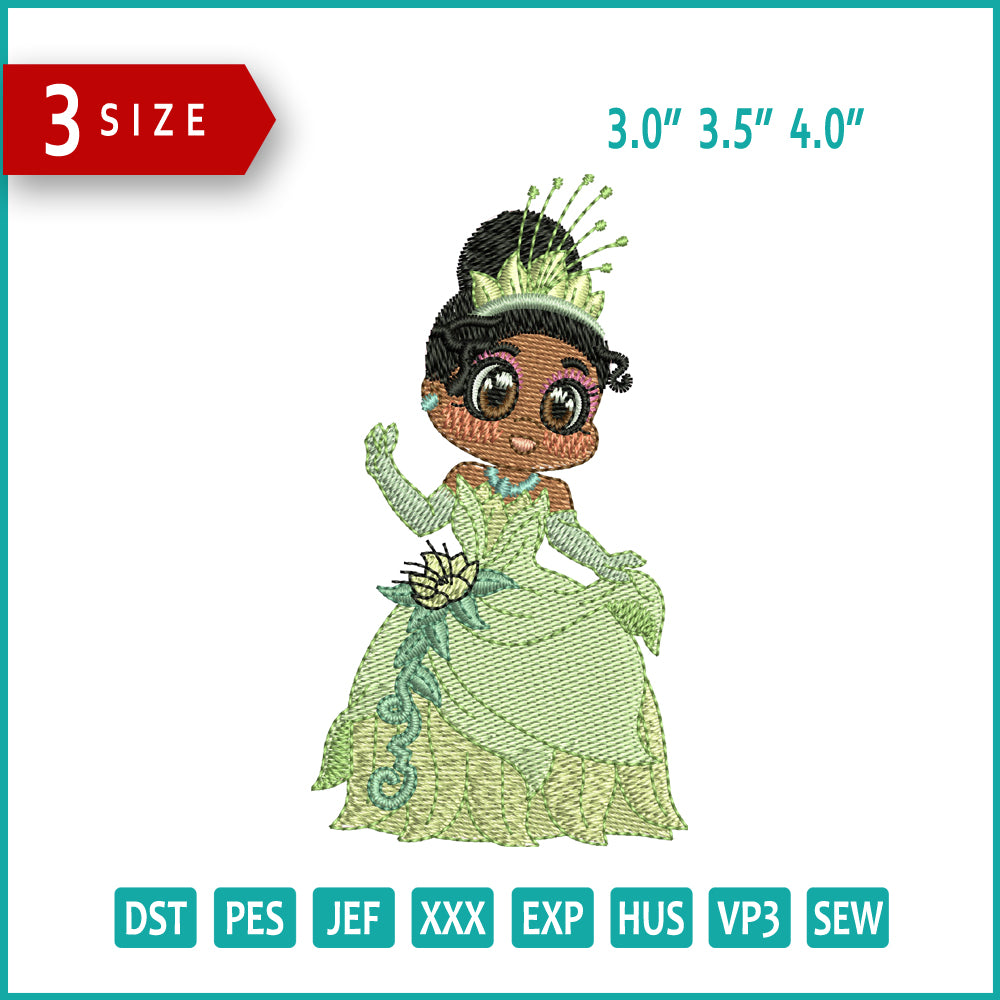 Chibi Princess Tiana Embroidery Design Files - 3 Size's