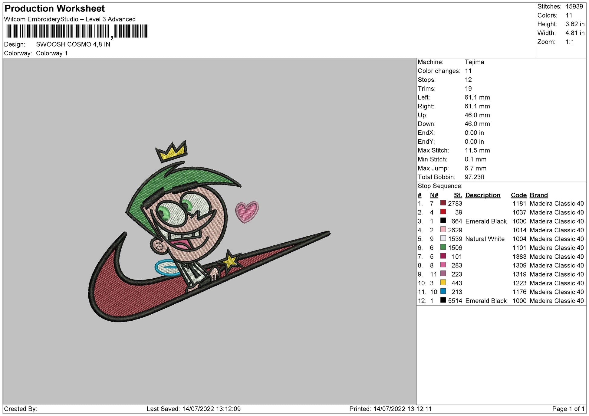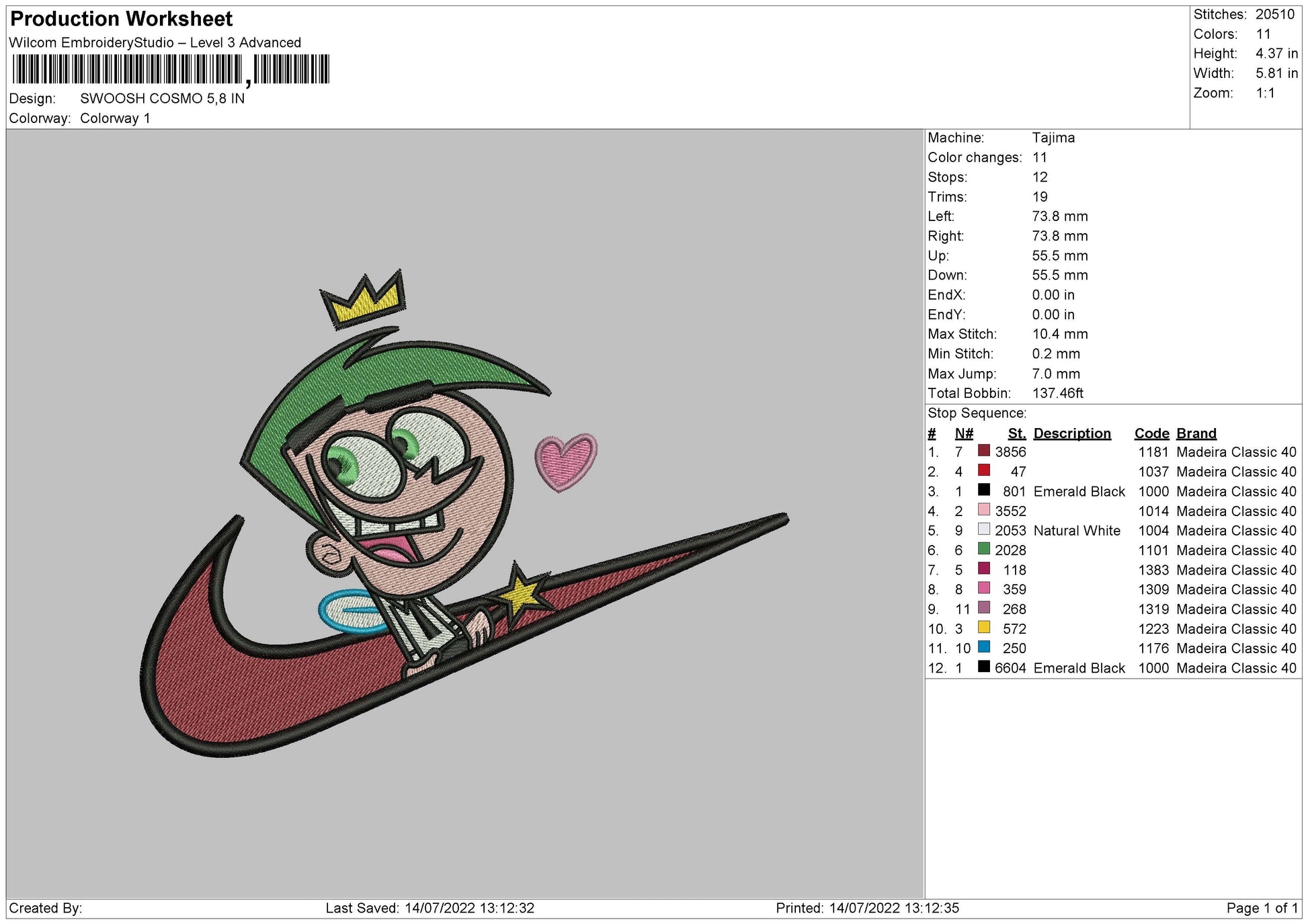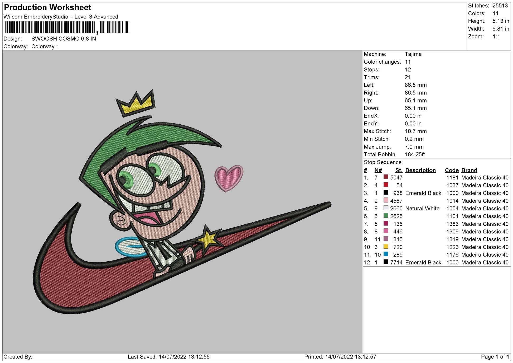Cosmo Swoosh Embroidery Design Files - 4 Size's