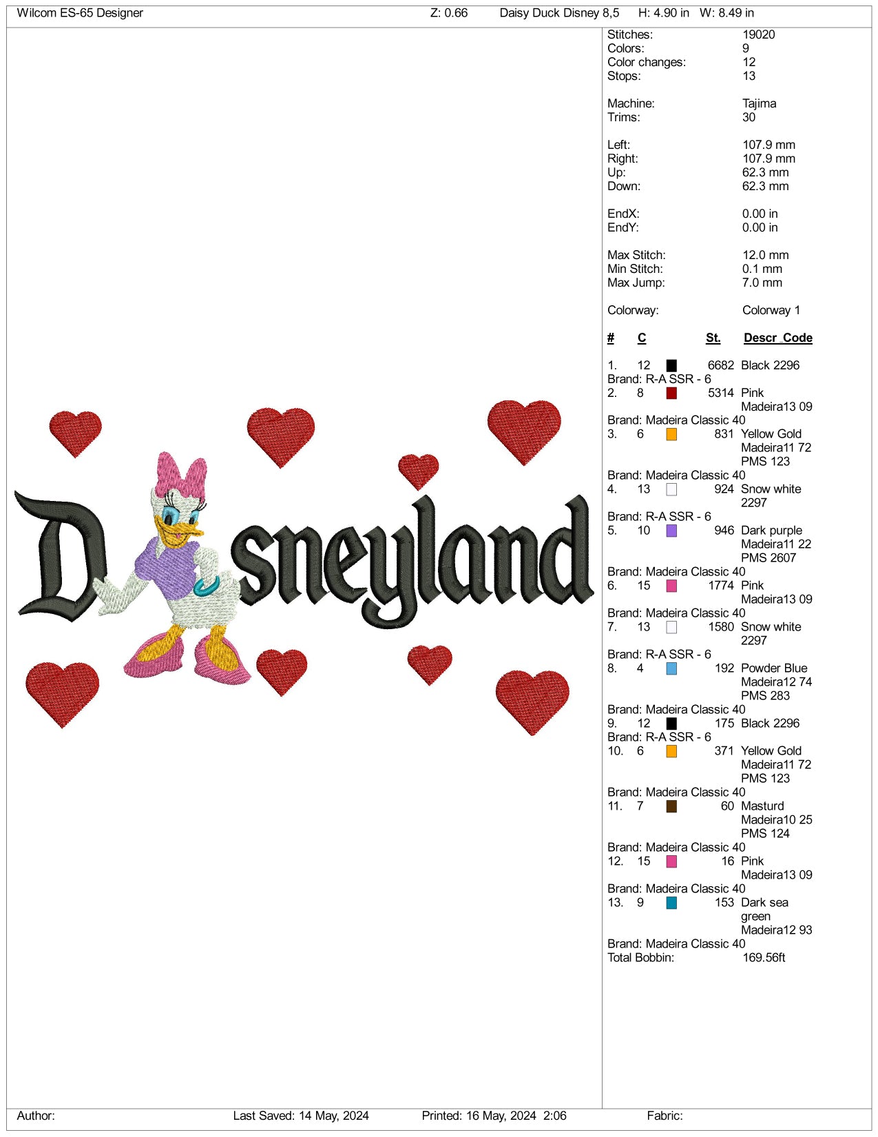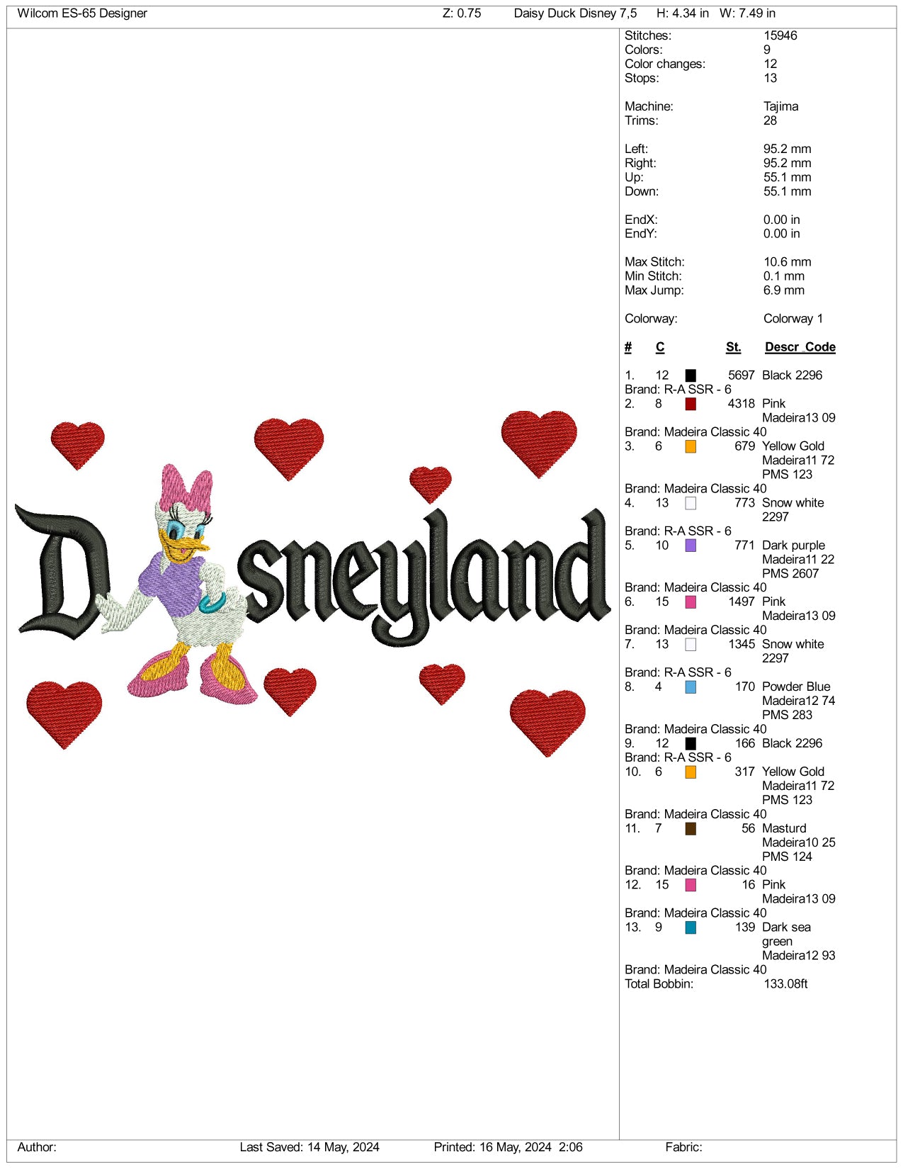 Daisy Duck Full Embroidery Embroidery Design Files - 3 Sizes