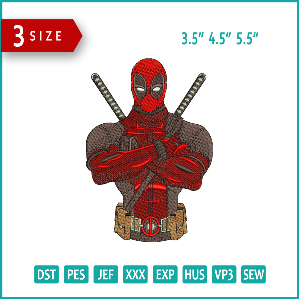 Deadpool Half Embroidery Design Files - 3 Size's