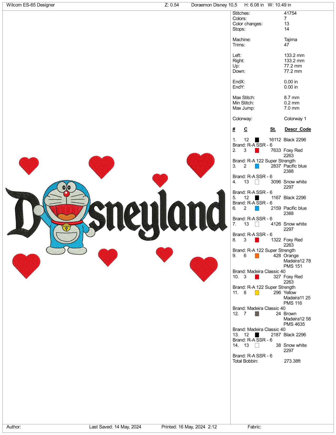 Doraemon Disneyland Embroidery Design Files - 3 Sizes