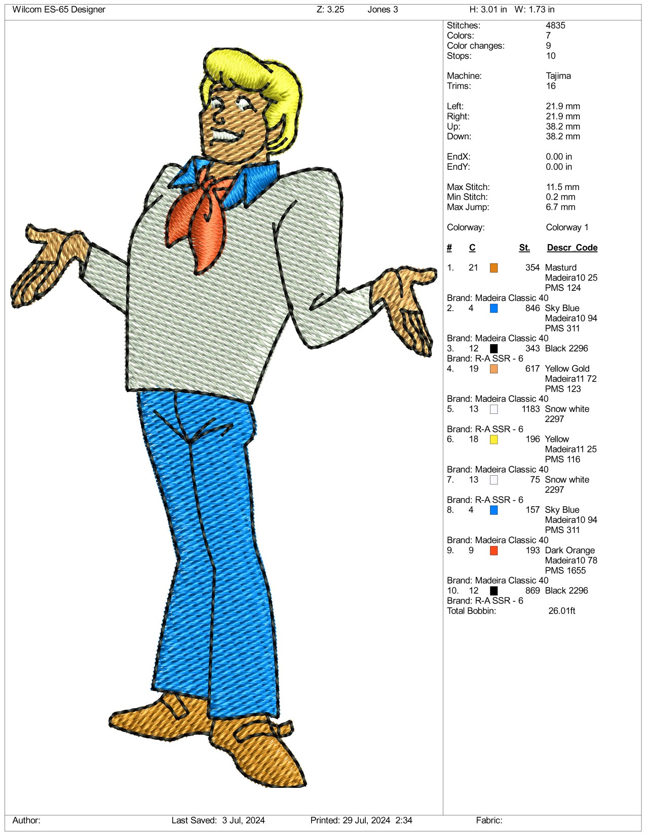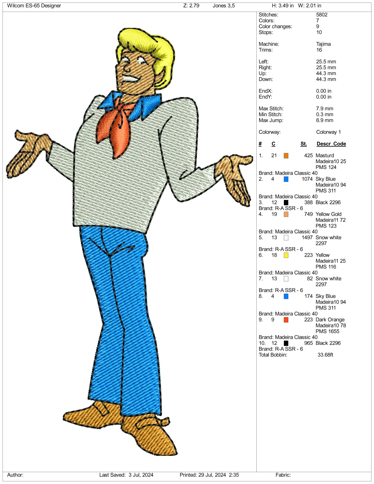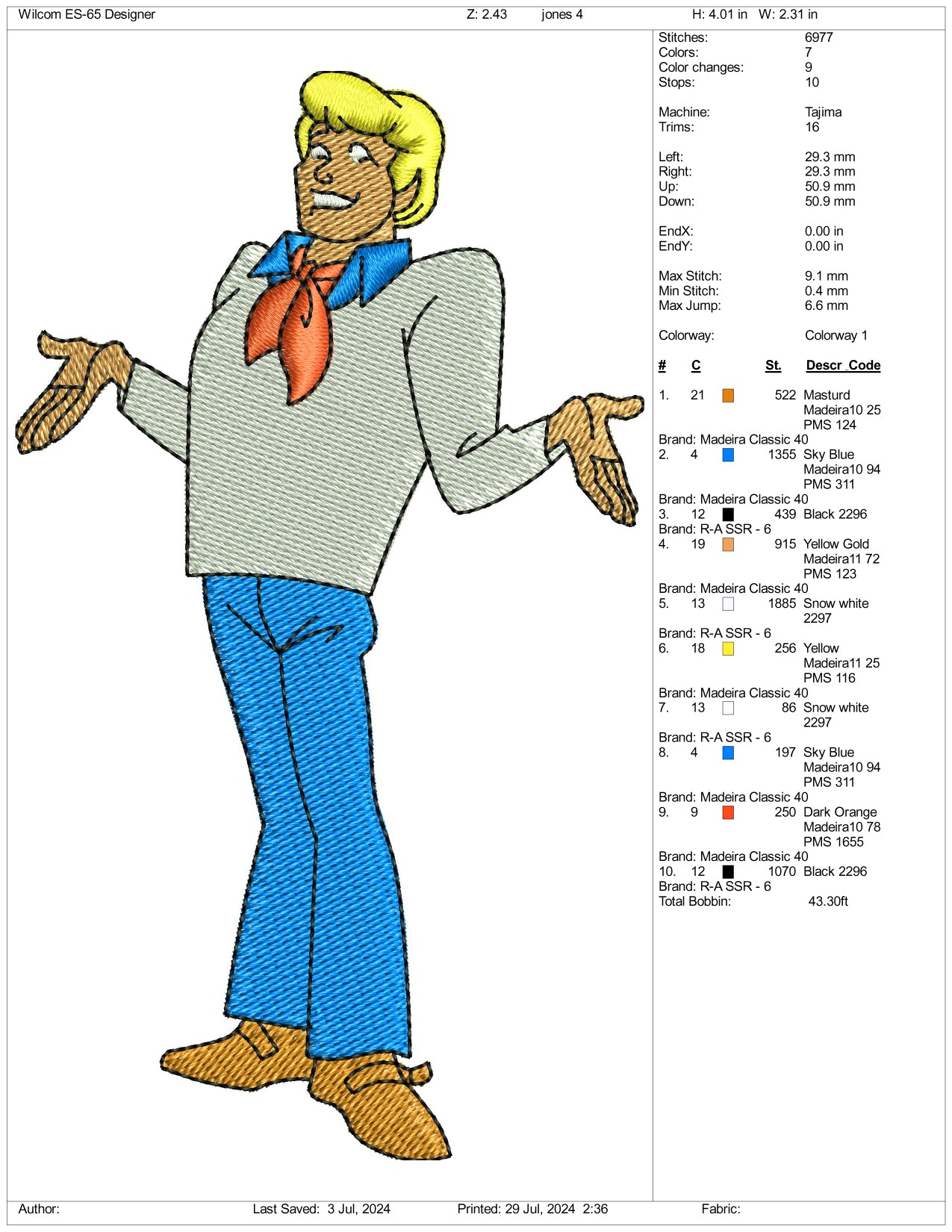 Fred Jones Embroidery Design Files - 3 Size's