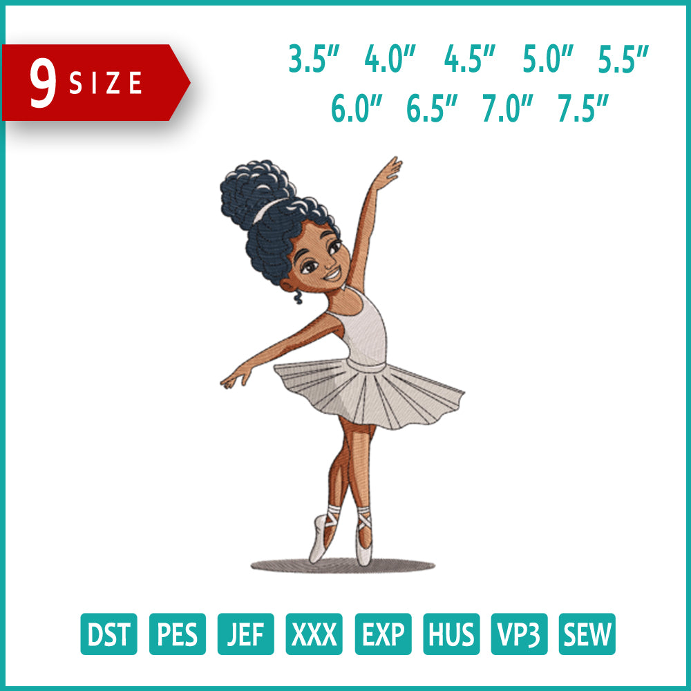Graceful Little Ballerina Embroidery Design Files - 9 Size's