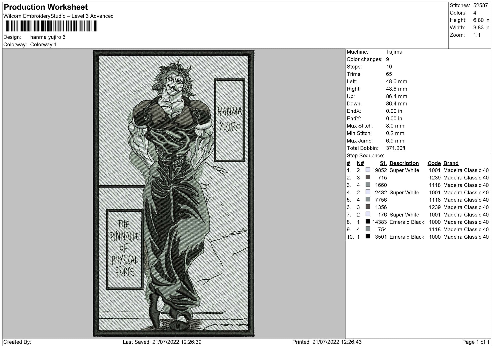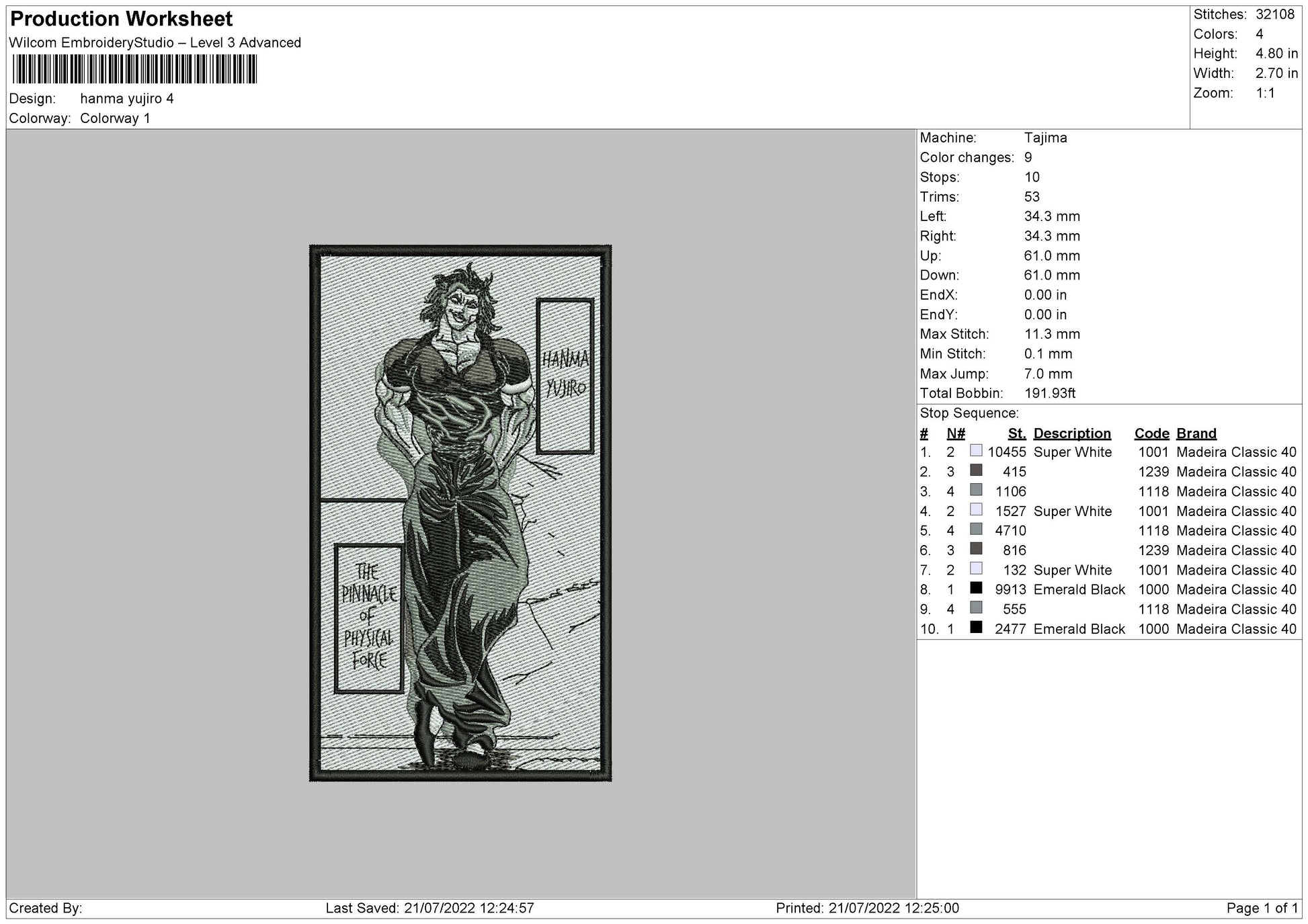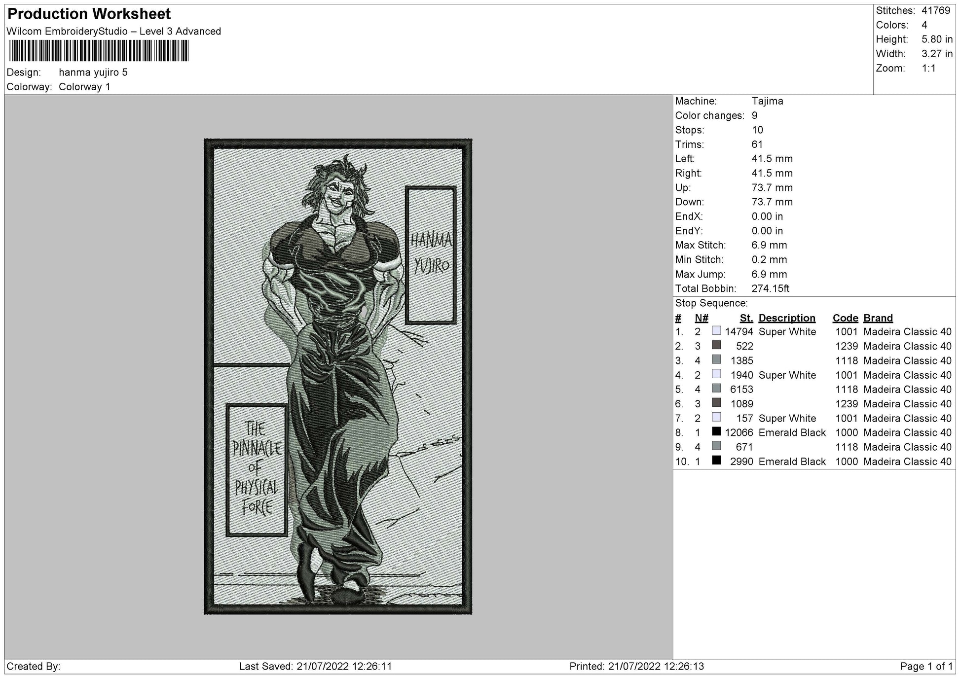 Hanma Yujiro Embroidery Design Files - 4 Size's