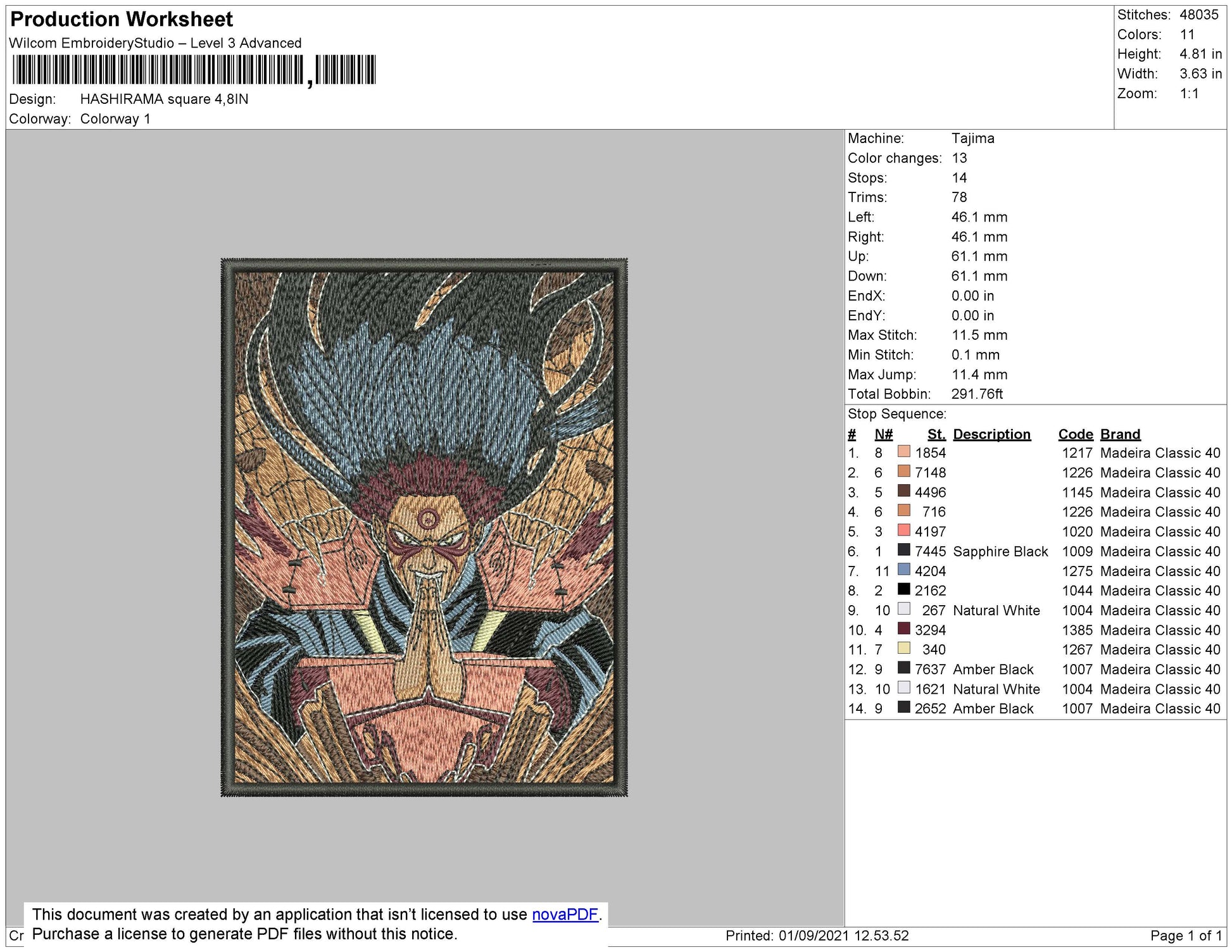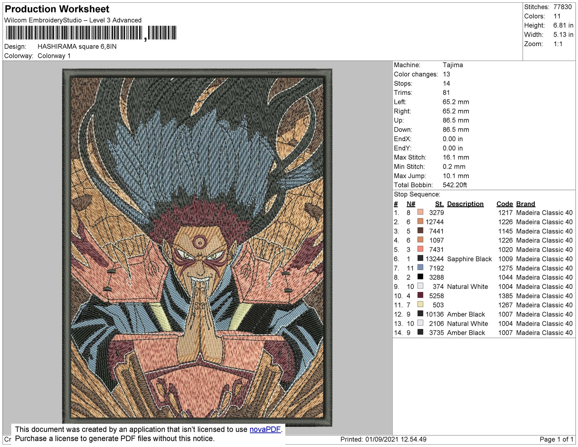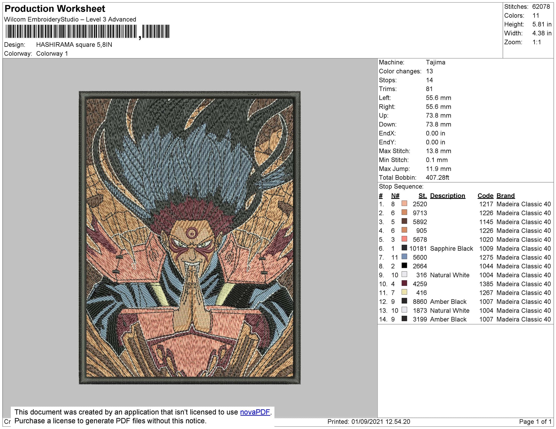 Hashirama Senju Embroidery Design Files - 4 Size's