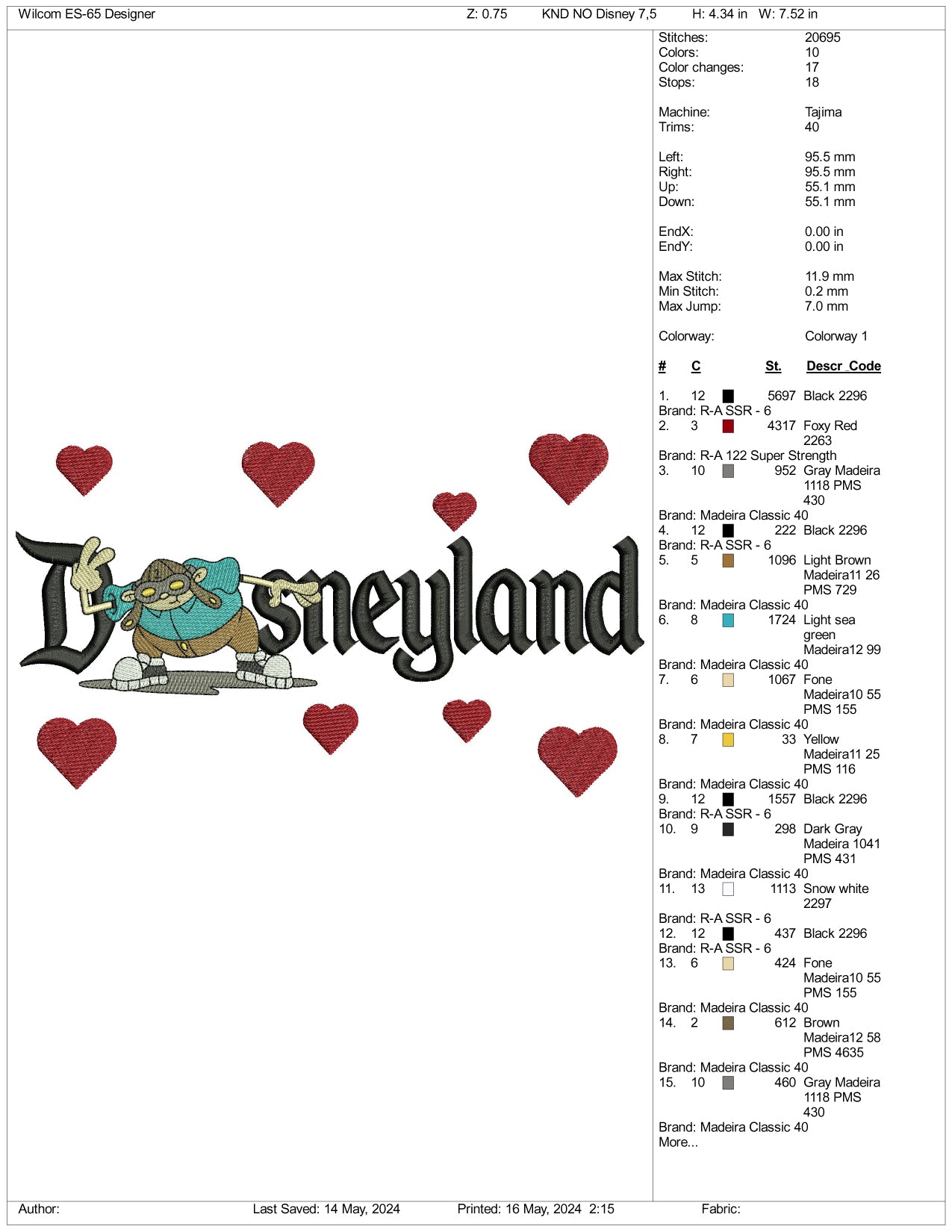 Hoagie Gilligan Disneyland Embroidery Design Files - 3 Sizes