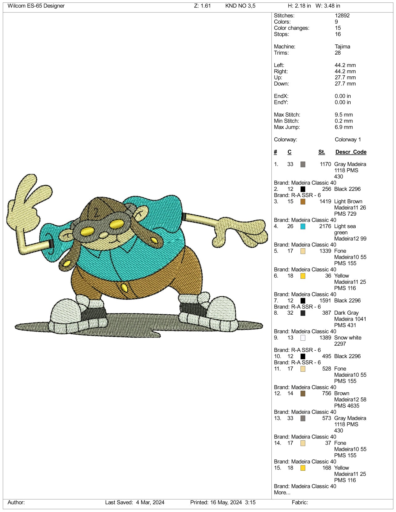 Hoagie Gilligan Embroidery Design Files - 3 Sizes