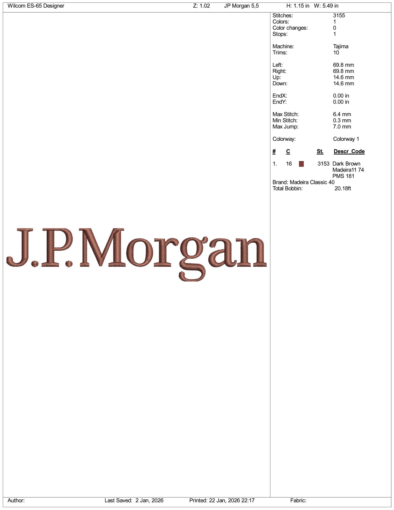 J.P Morgan Logo Embroidery Design Files - 4 Size's