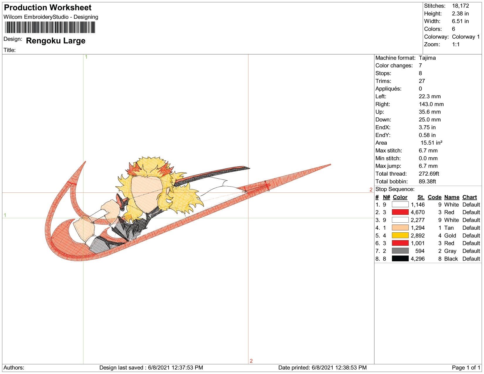 Kyojuro Rengoku Swoosh v3 Embroidery Design Files - 3 Size's