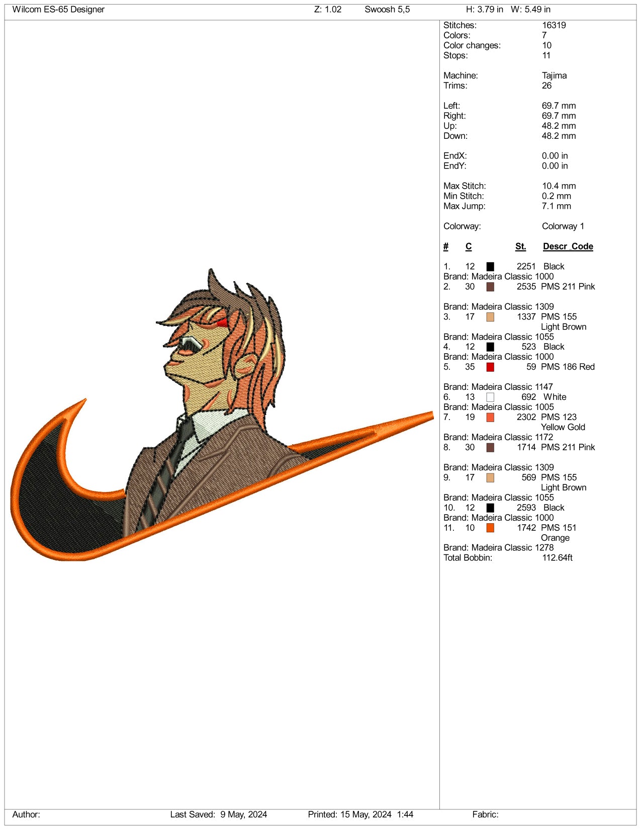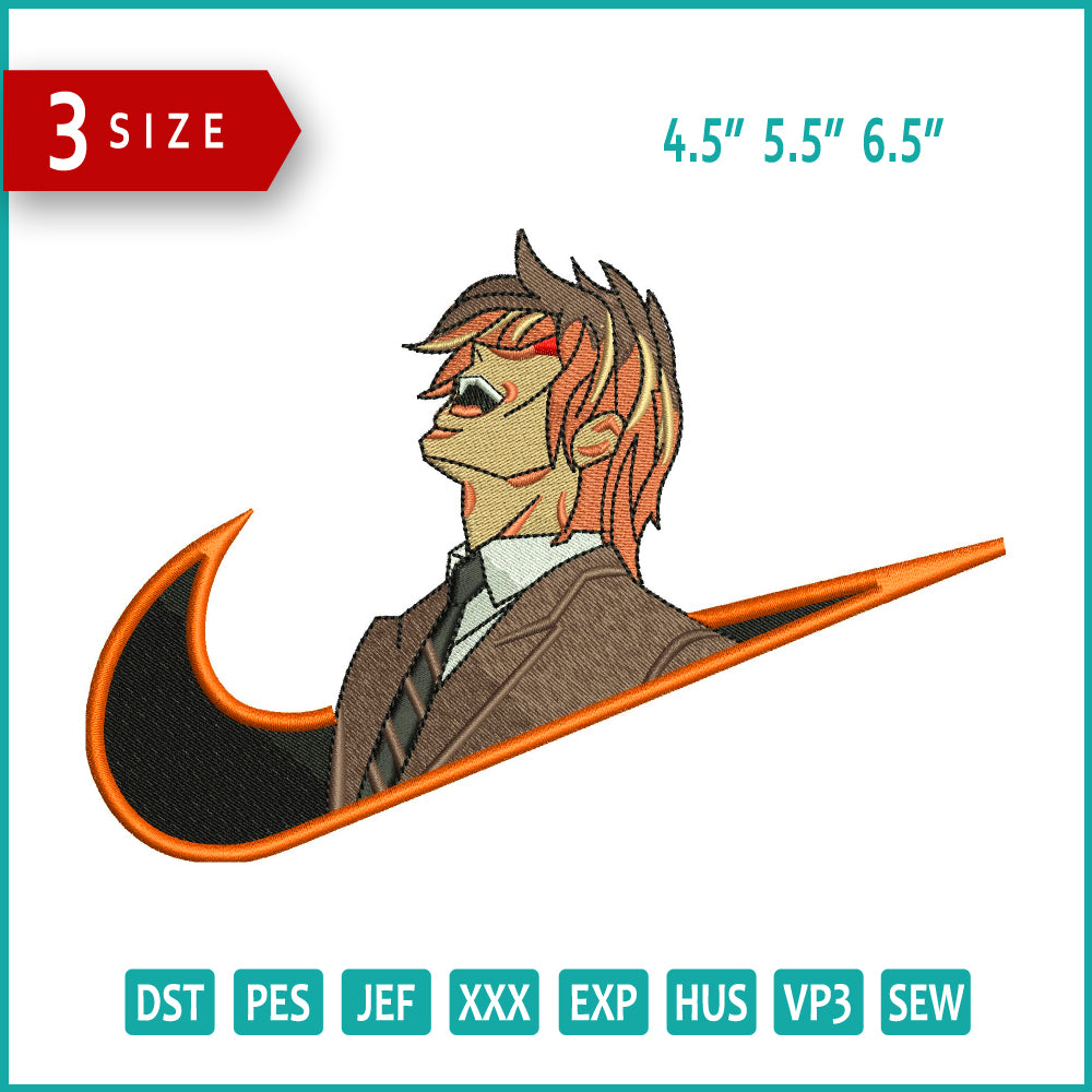 Light Yagami Swoosh Embroidery Design Files - 3 Sizes