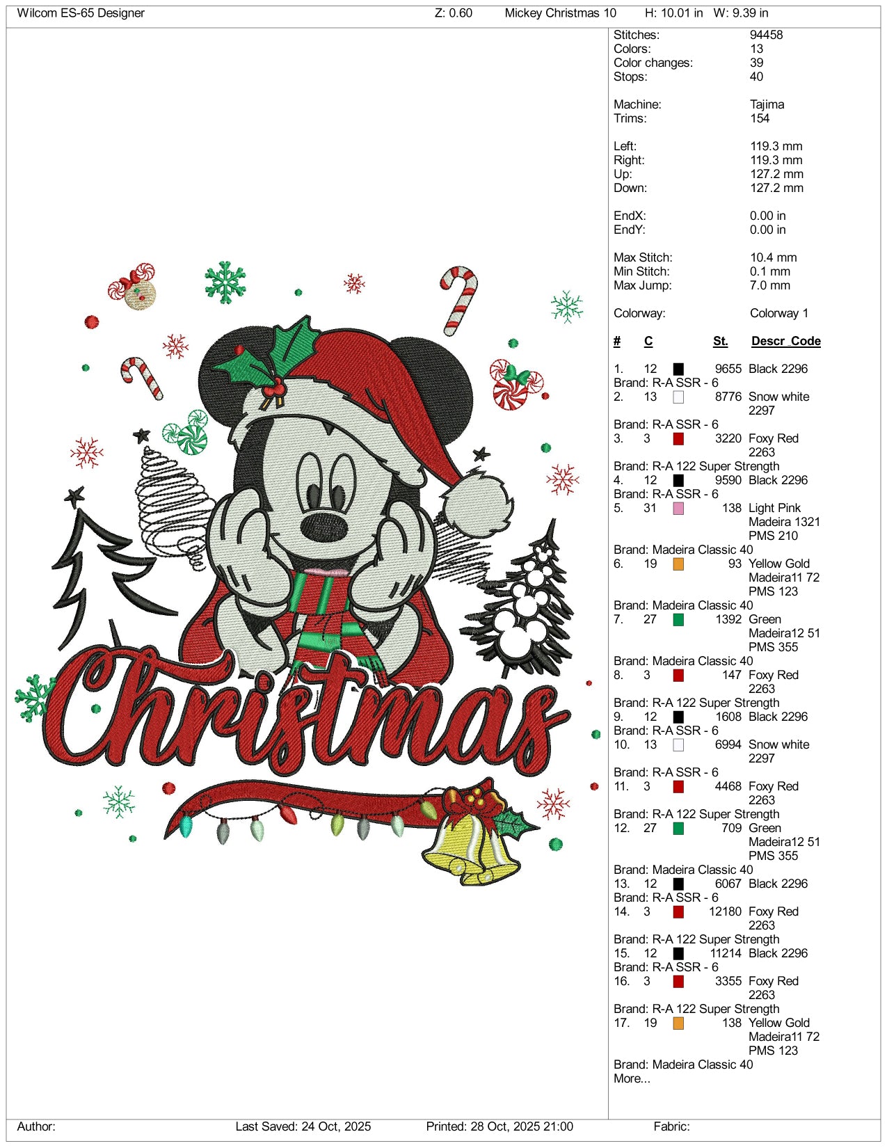 Mickey Mouse Christmas Embroidery Design Files - 4 Size's