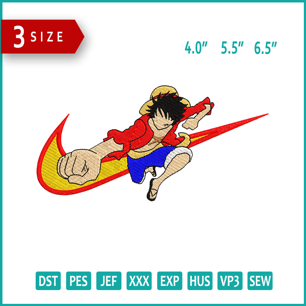 Monkey D Luffy Swoosh v8 Embroidery Design Files - 3 Size's