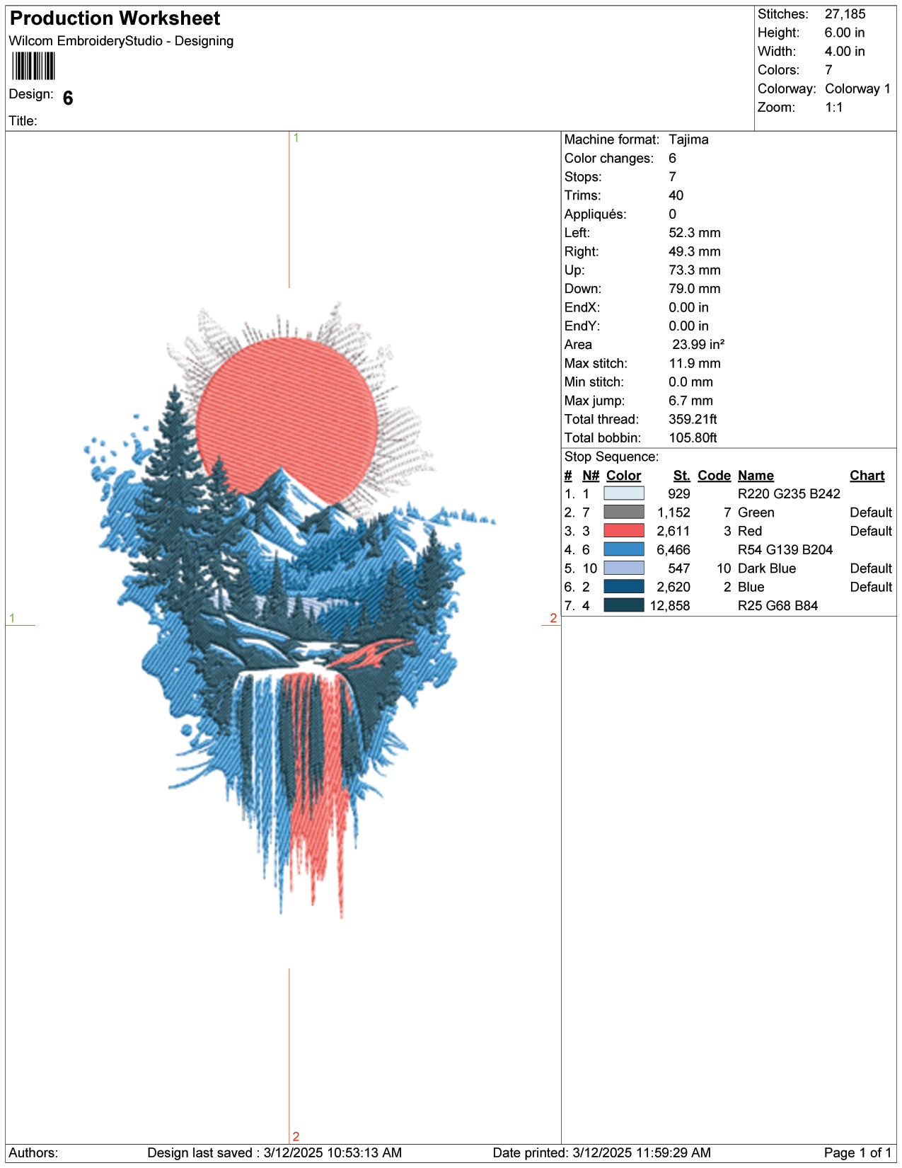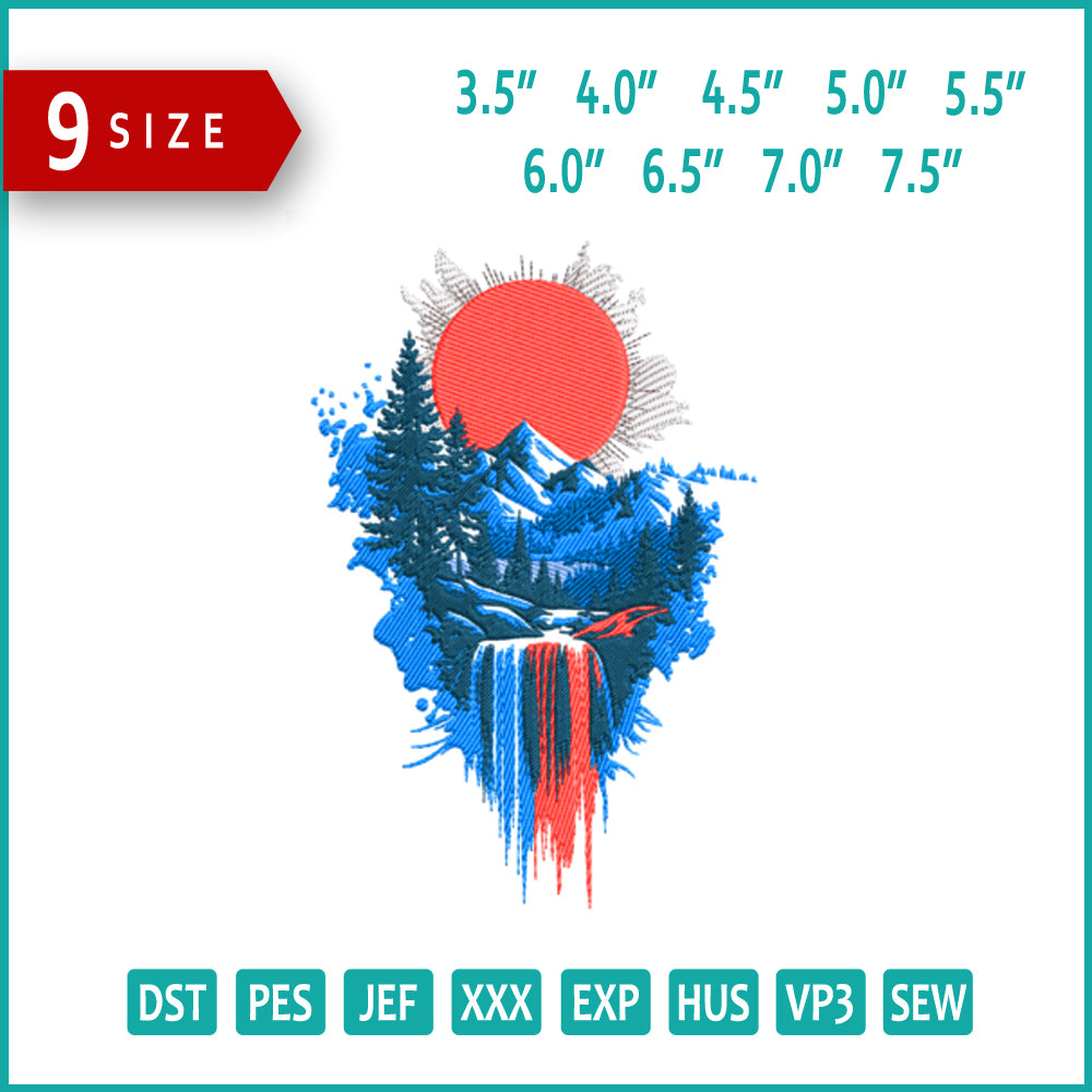 Mountain Landscape Embroidery Design Files - 9 Size's