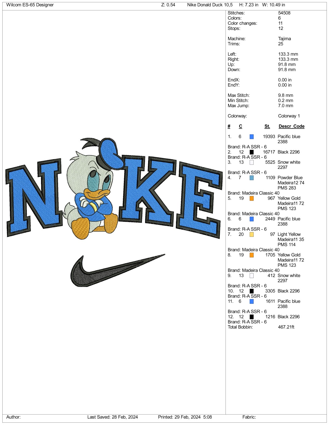 Nike Baby Donald Duck Embroidery Design Files - 3 Size's
