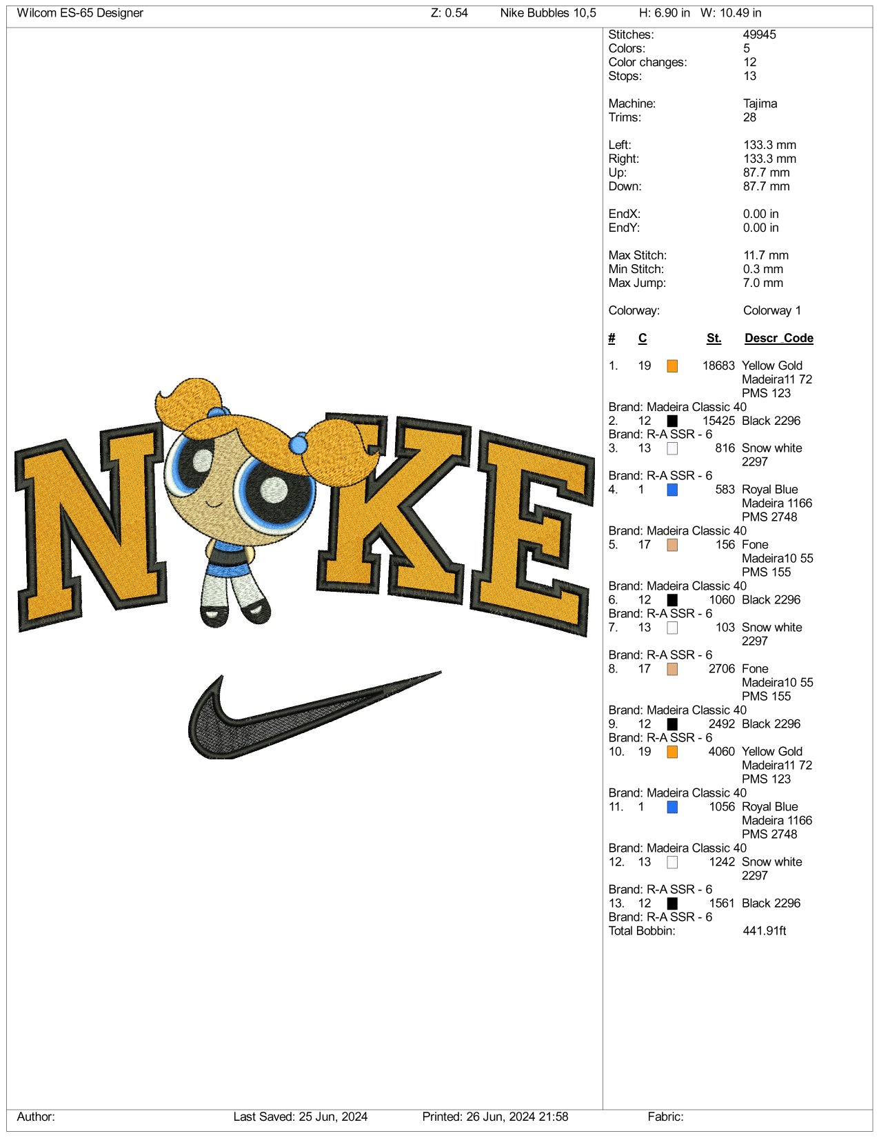 Nike Bubbles Embroidery Design Files - 3 Sizes
