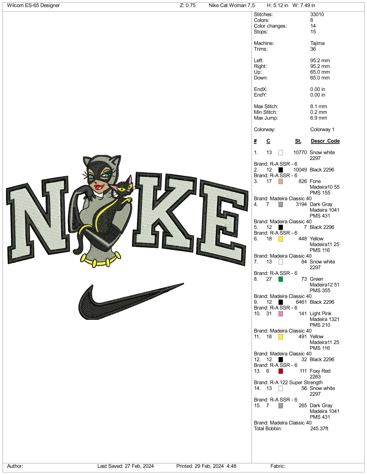 Nike Catwoman Half Embroidery Design Files - 3 Size's