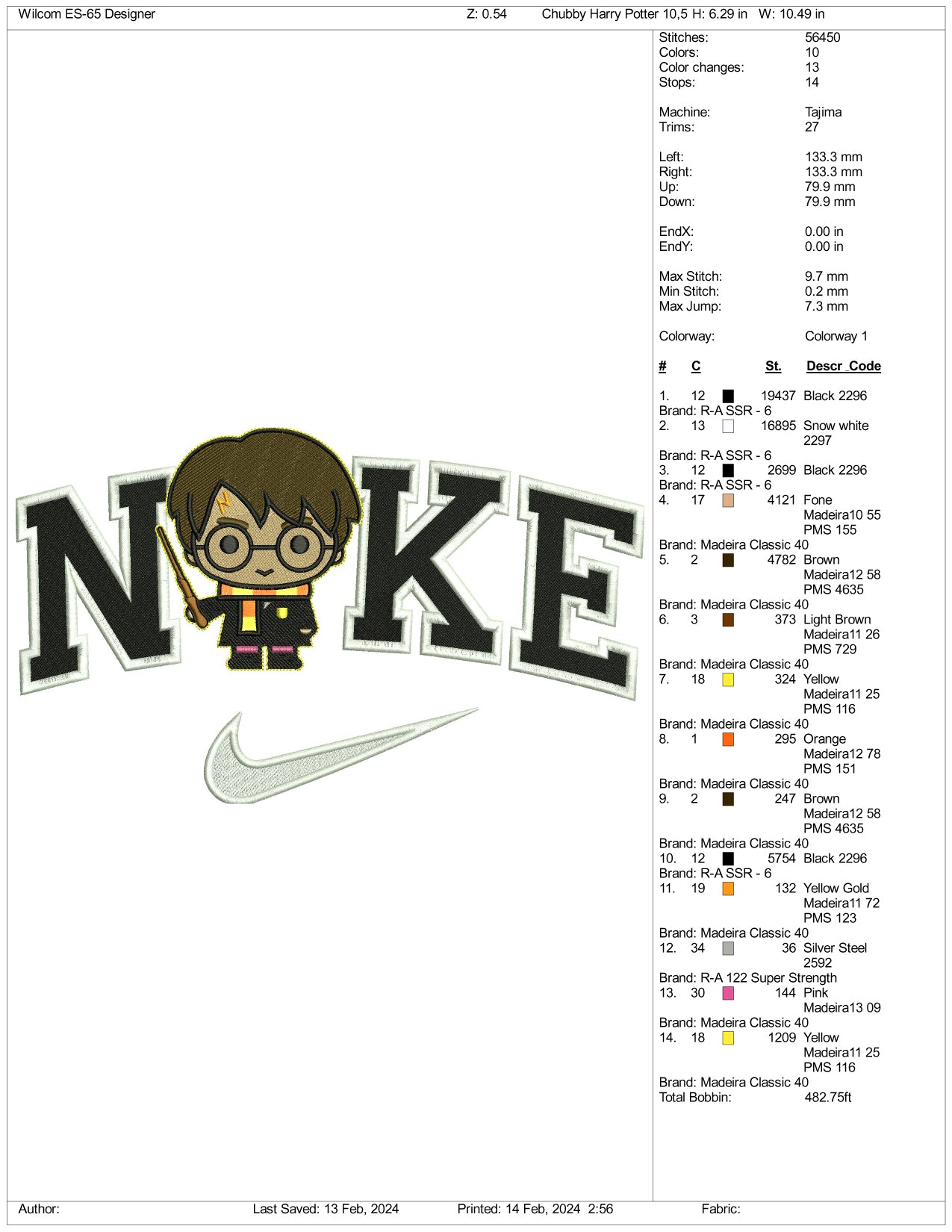 Nike Chibi Harry Potter Embroidery Design Files - 3 Size's