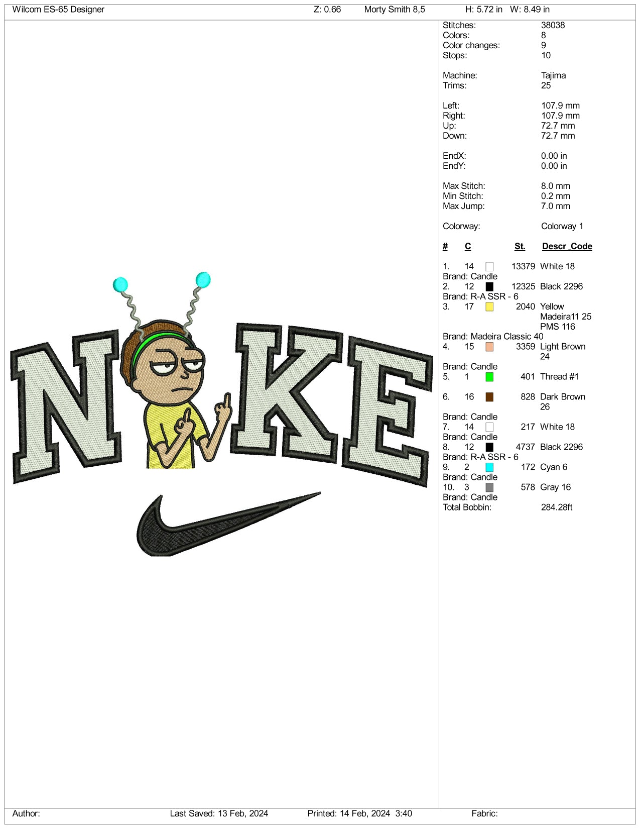 Nike Morty Smith Embroidery Design Files - 3 Size's