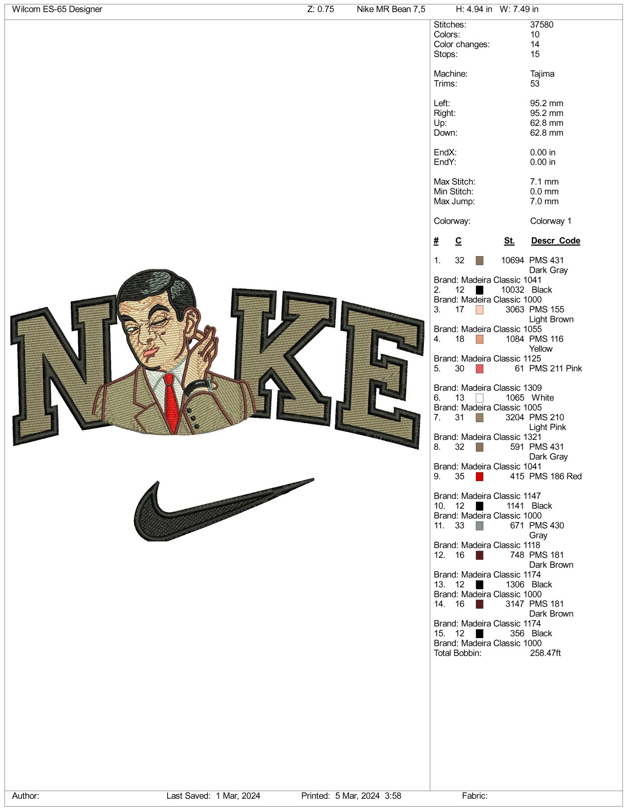 Nike Mr Bean Embroidery Design Files - 3 Size's