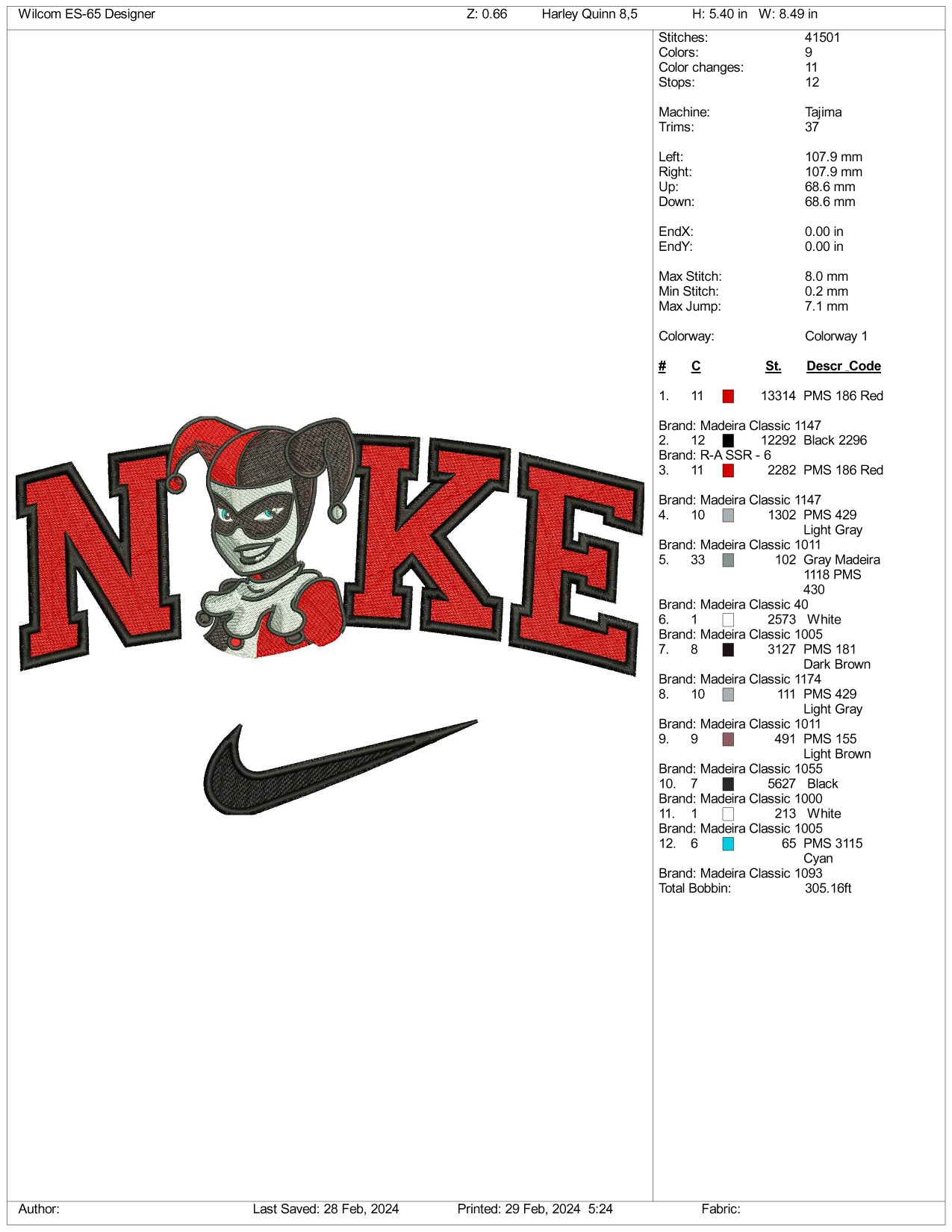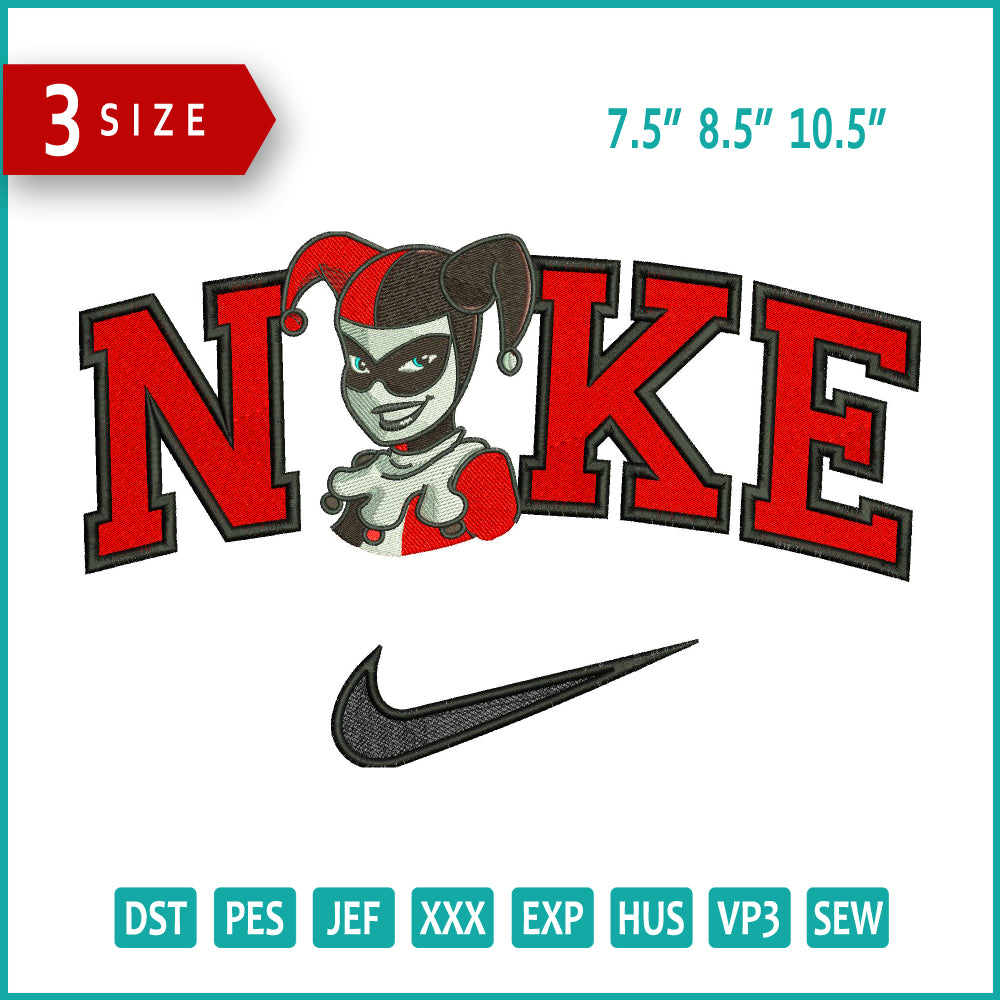 Nike Old Harley Quinn Half Embroidery Design Files - 3 Size's
