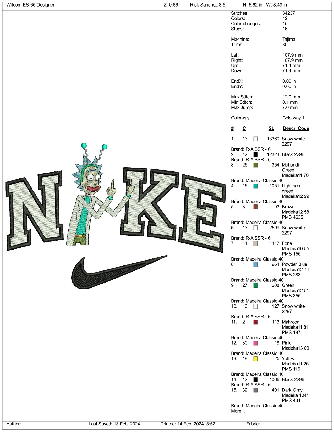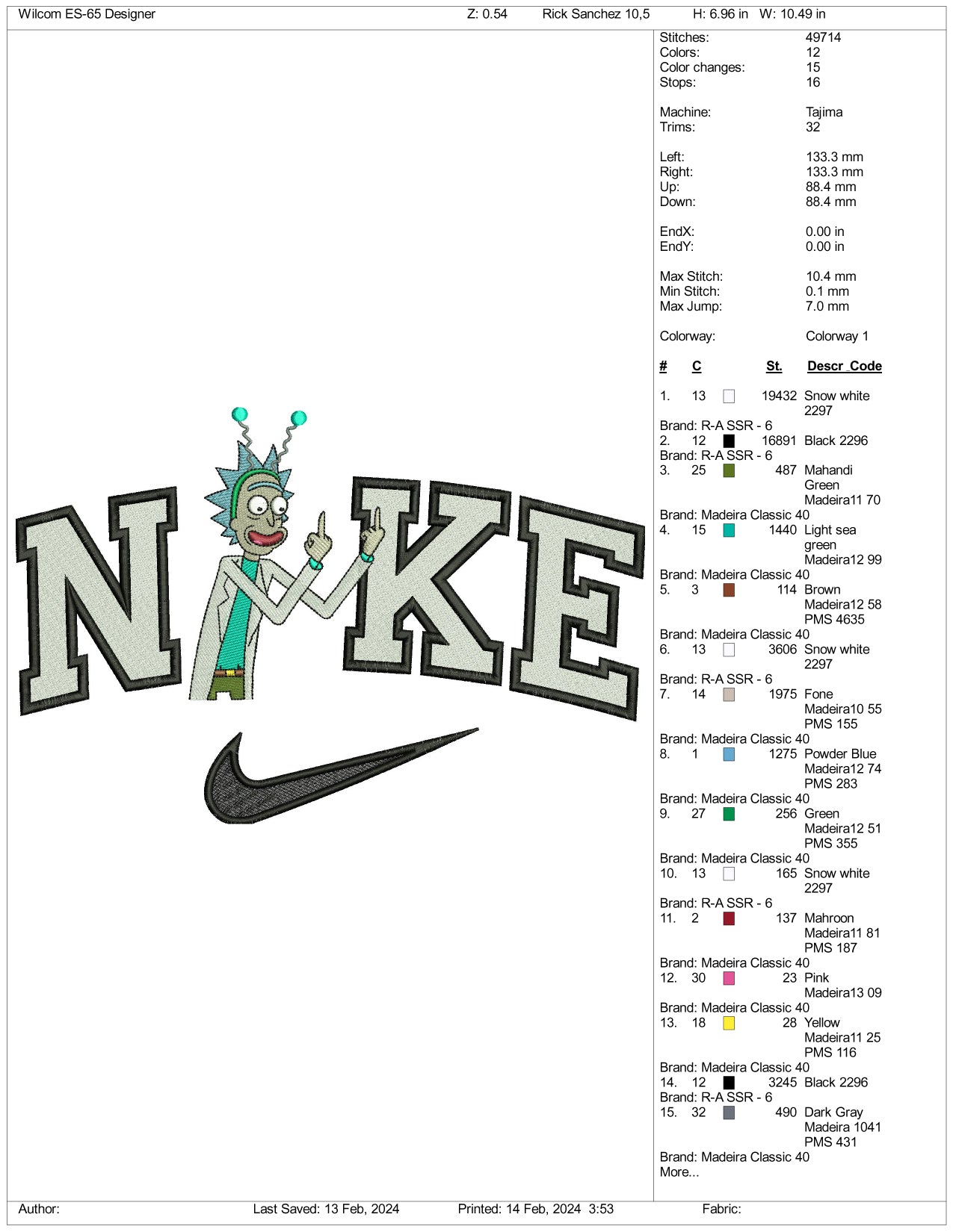 Nike Rick Sanchez Embroidery Design Files - 3 Size's