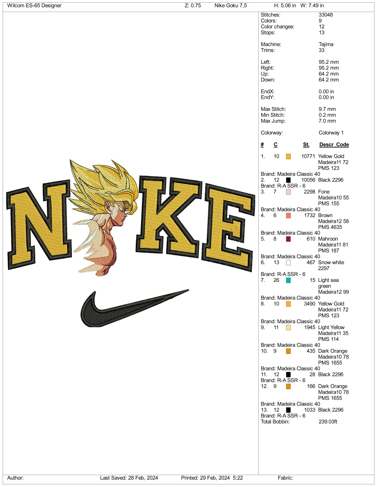 Nike Super Saiyan Goku v4 Embroidery Design Files - 3 Size's