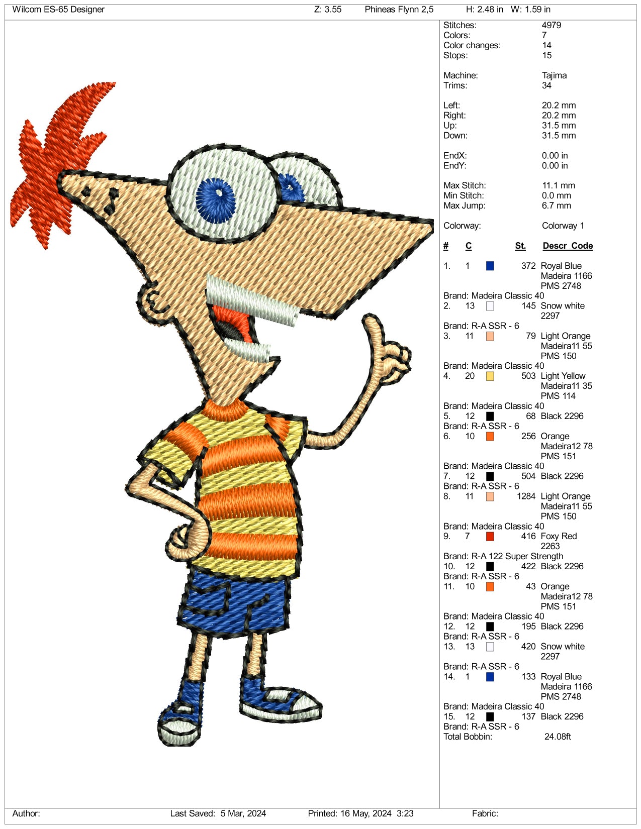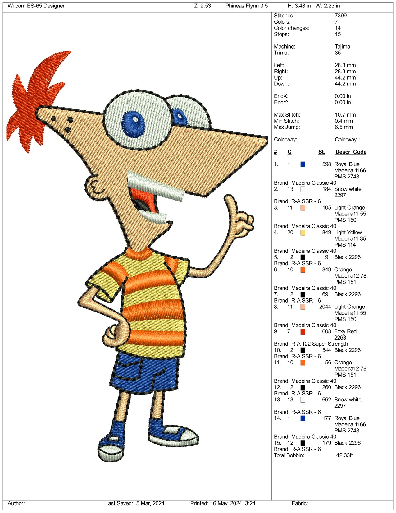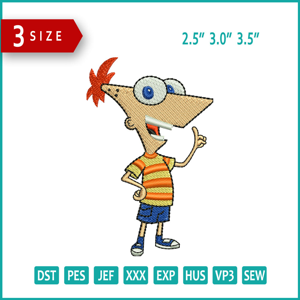 Phineas Flynn Embroidery Design Files - 3 Sizes