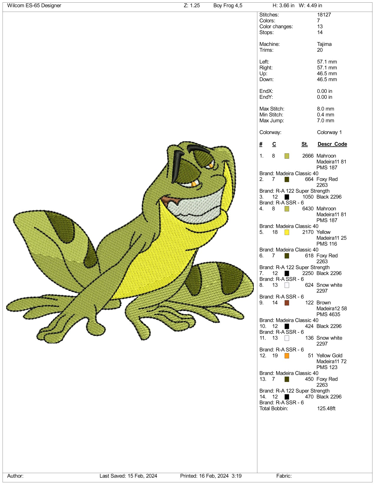 Prince Naveen Frog Embroidery Design Files - 3 Size's