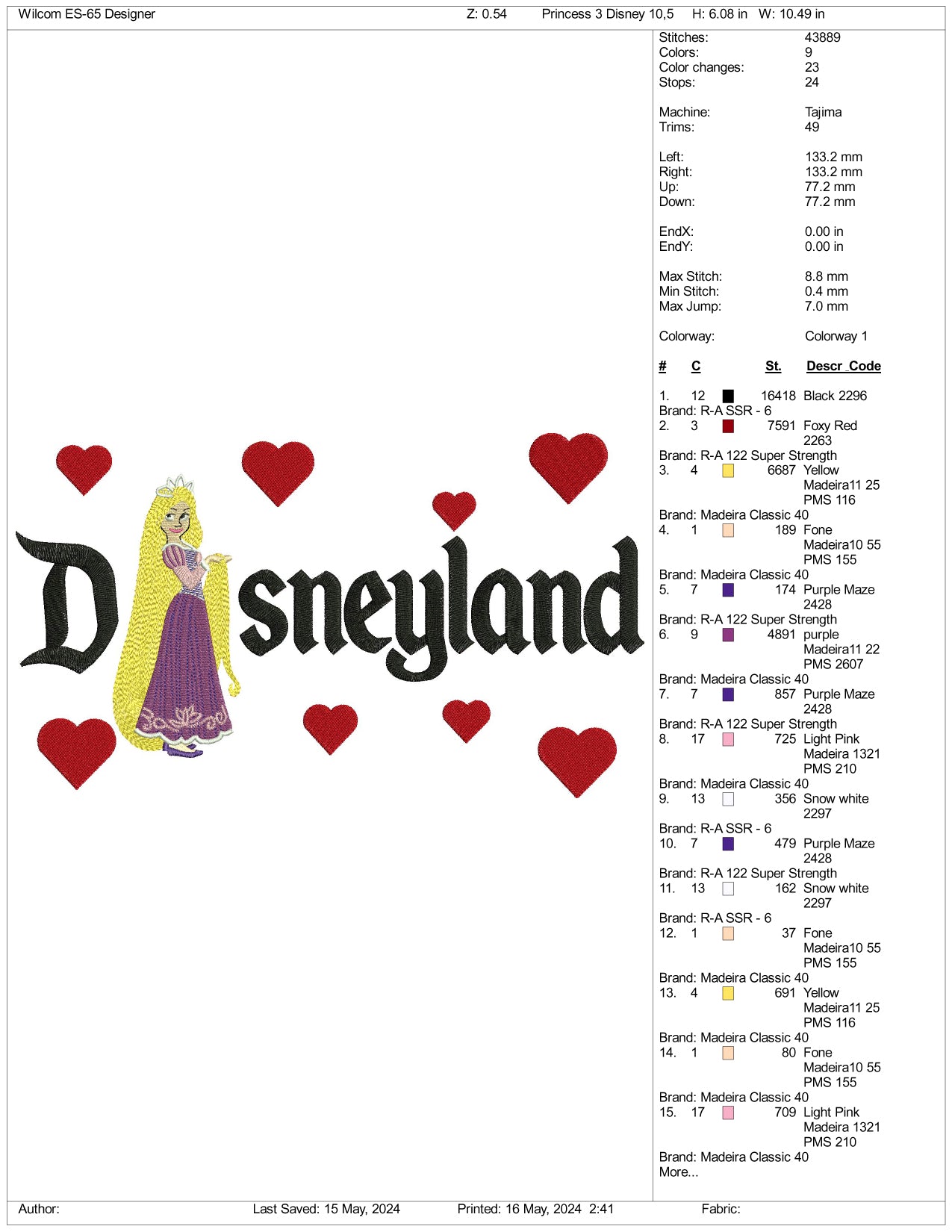 Rapunzel v2 Disneyland Embroidery Design Files - 3 Sizes